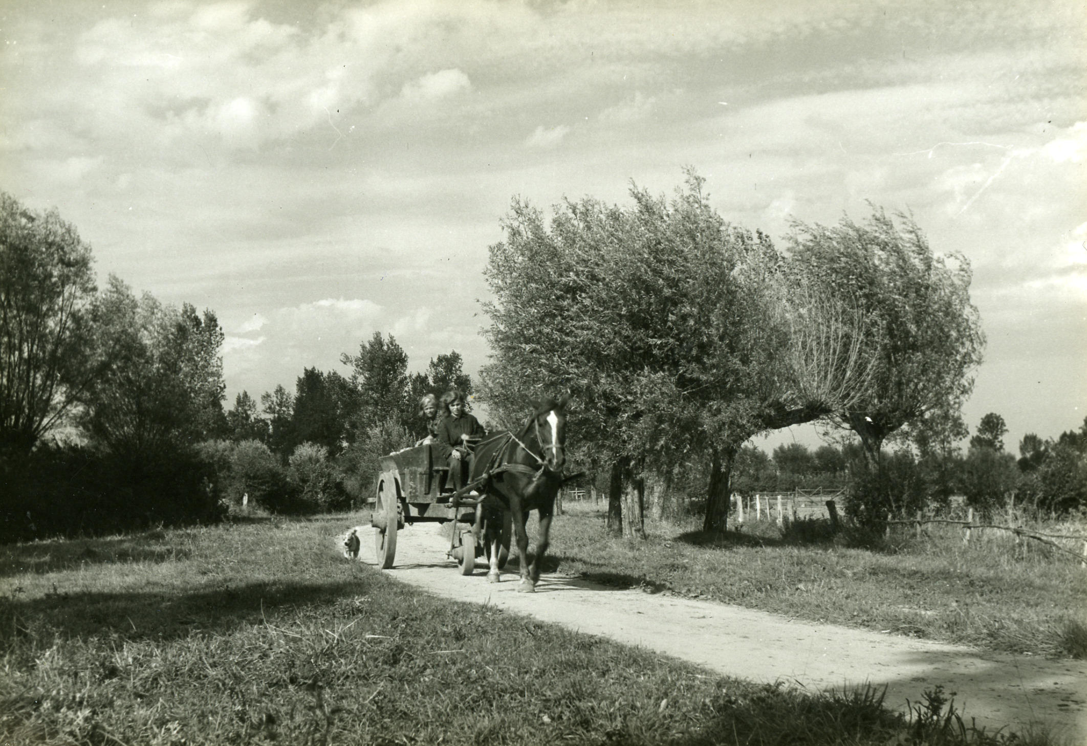 Driewielskar, Veessen,1945 (zwart-wit foto)
