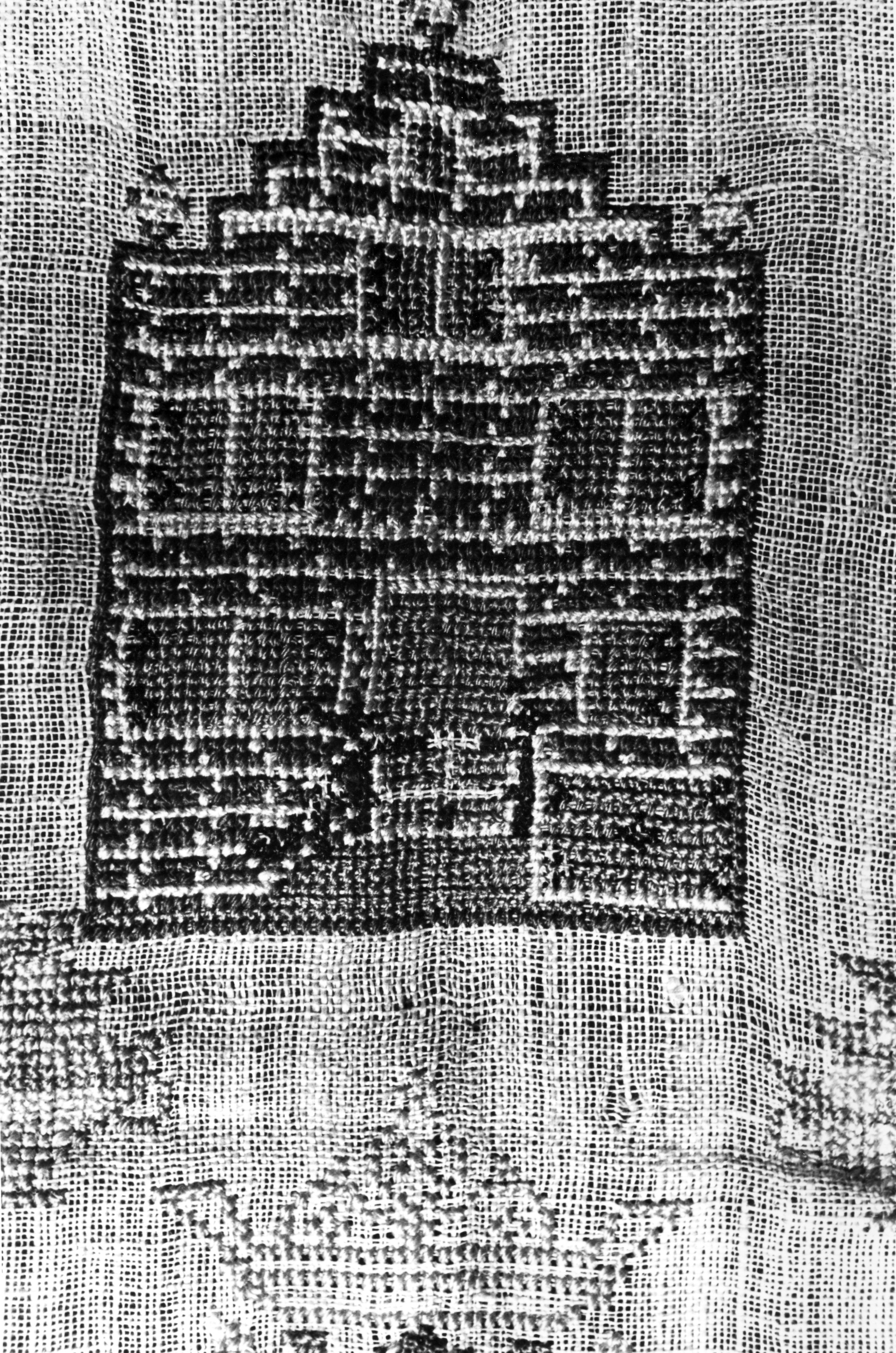 Detail van een merklap, Marken, 1943 (zwart-wit foto)