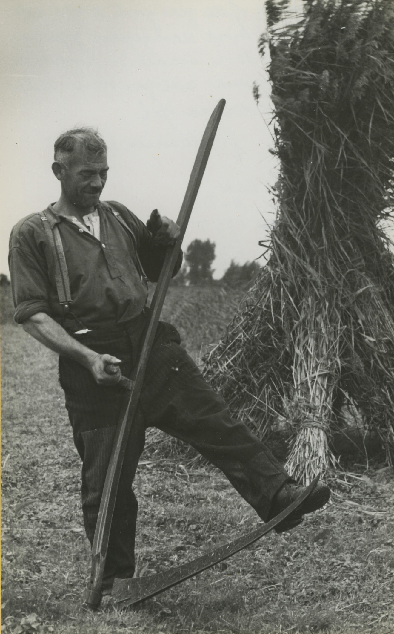 Rietmaaiersgereedschap, Veessen, 1945 (zwart-wit foto)