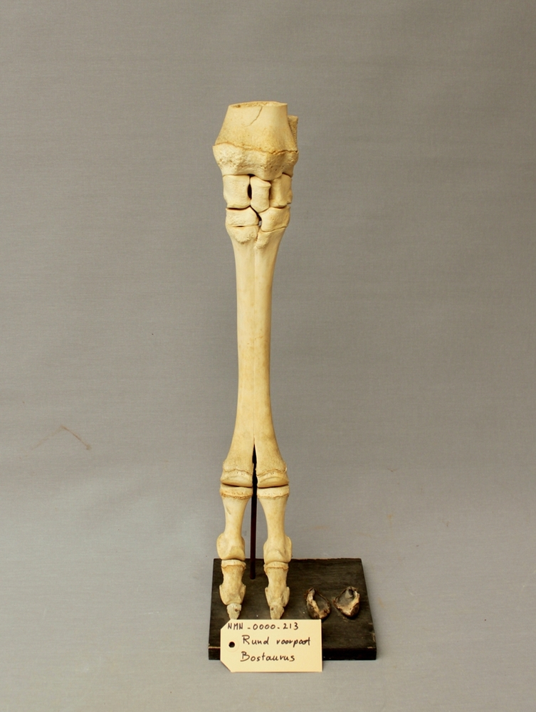 Rund; voorpoot skelet; op plank gemonteerd