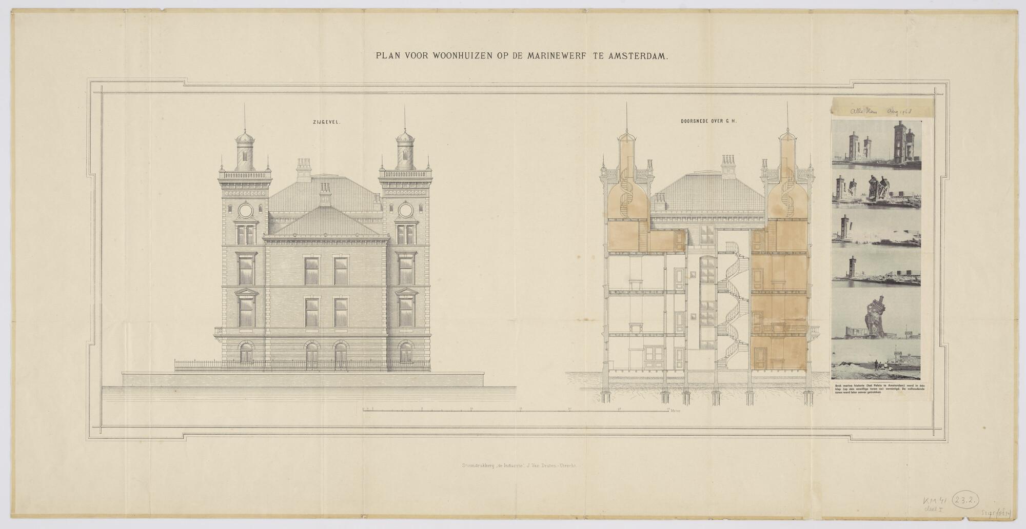 Aanzicht zijgevel (Z.O.) en verticale doorsnede van ...