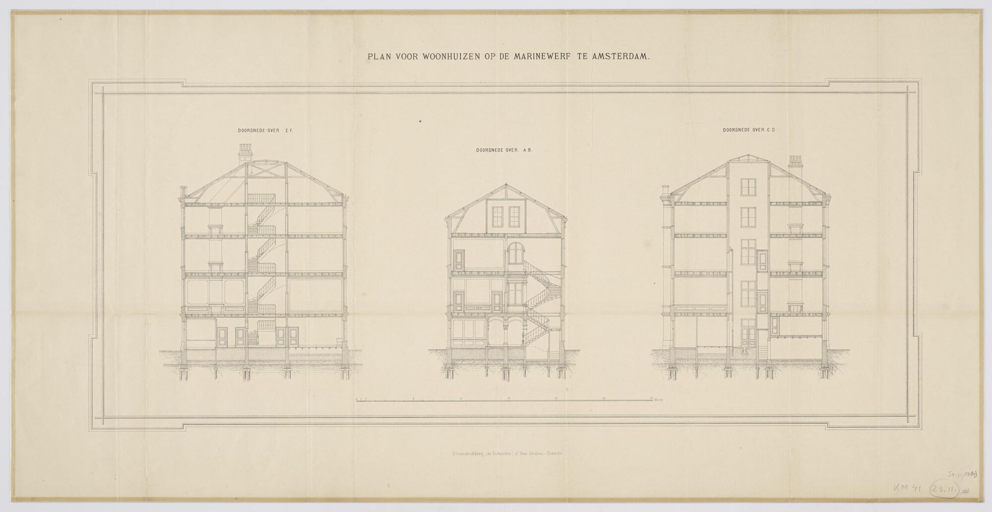 Drie verticale dwarsdoorsneden voor de bouw van het ...