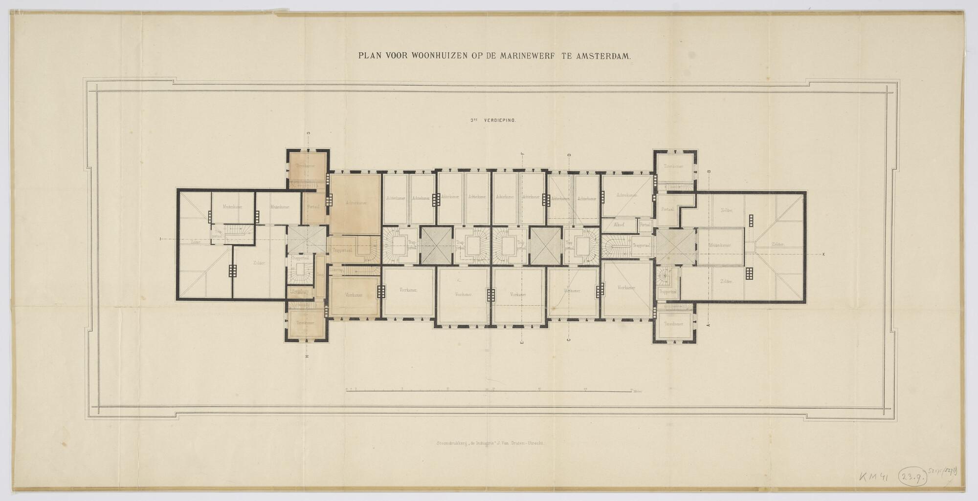 Indelingstekening van de derde verdieping voor de bo...