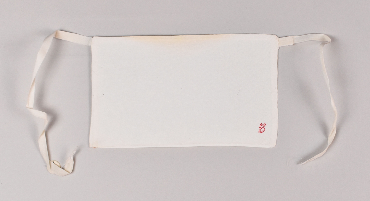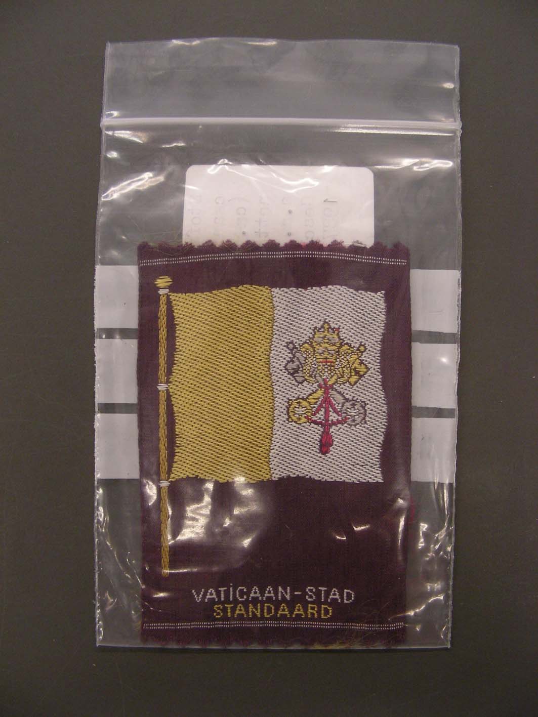 Wit sacramentsvaan met hostie waarop rood kruis in s...