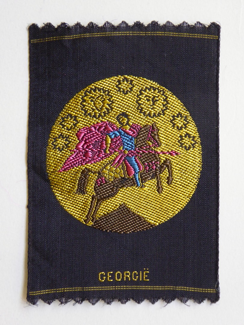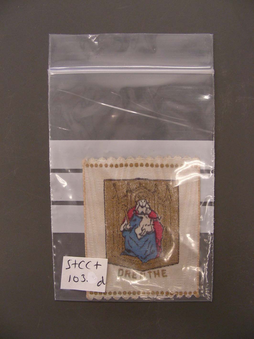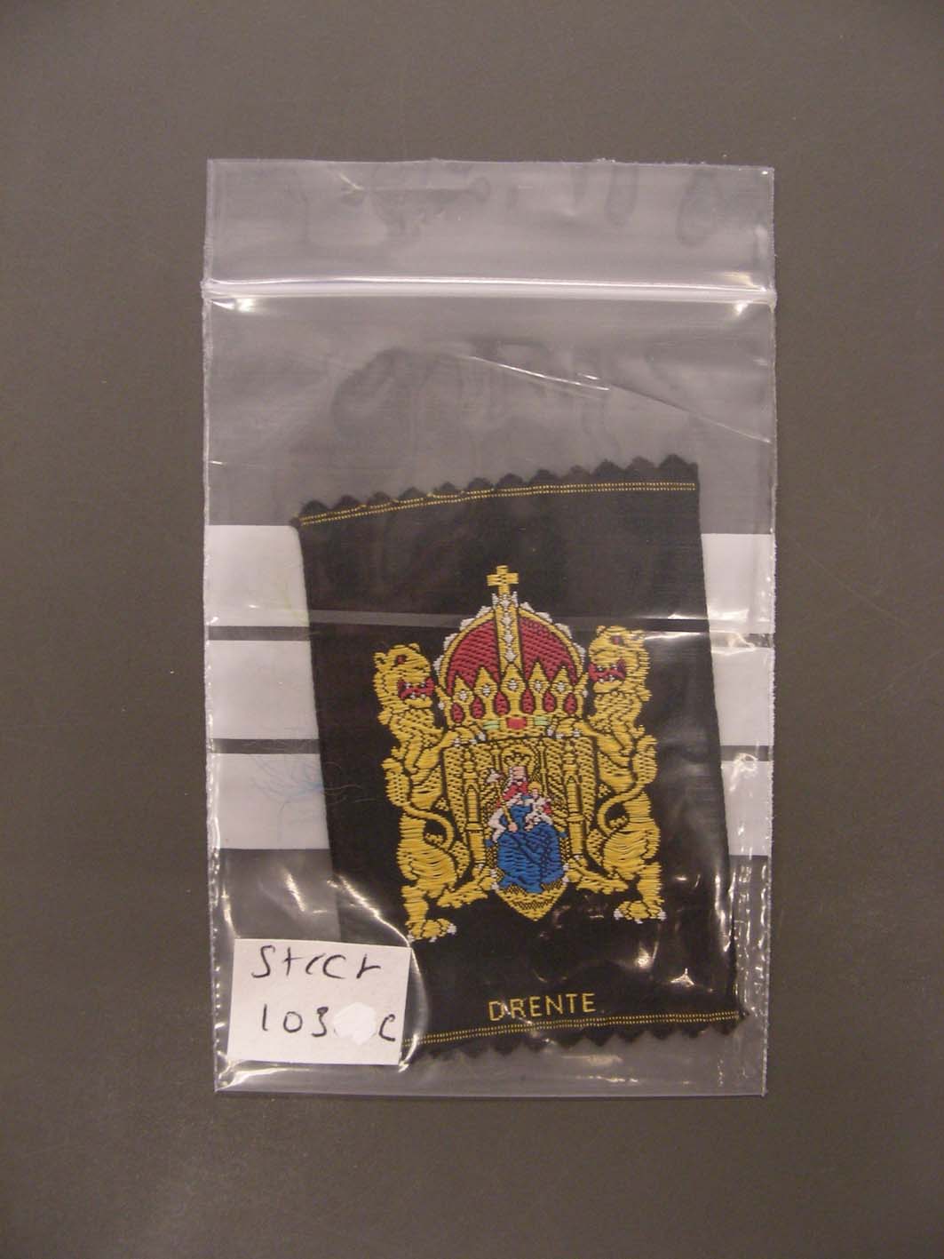 Zwart stofvignet met wapen van Drenthe: Maria met ki...