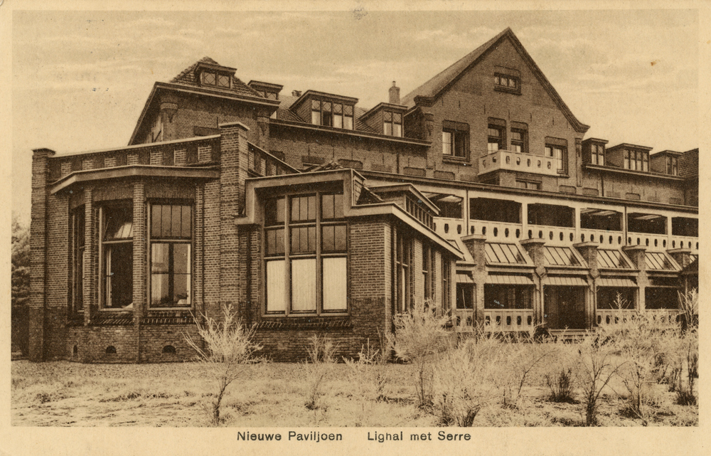 Prentbriefkaart, getiteld 'Nieuwe Paviljoen Lighal m...