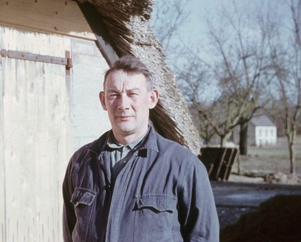 Portret van een boer bij een Noord-Veluwse boerderij