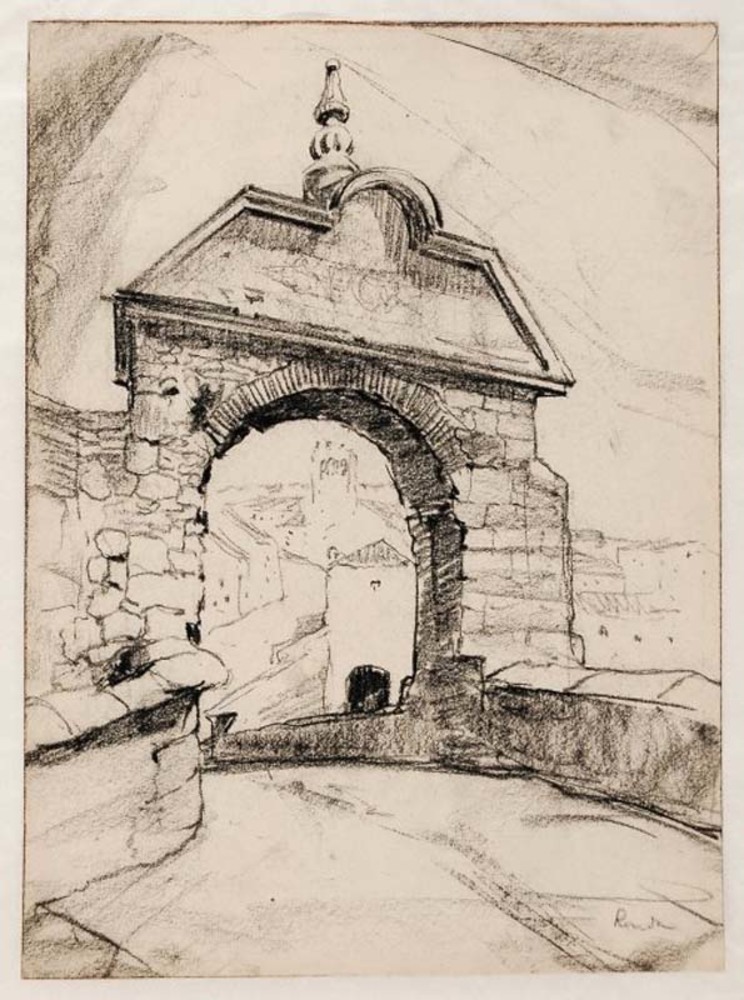 Gezicht door poort op de brug van Ronda
