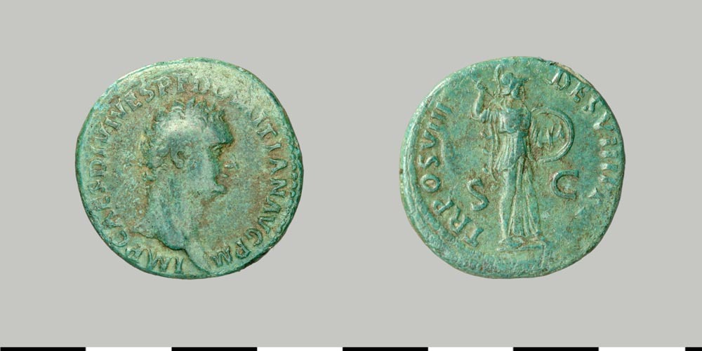 As van Domitianus, munt van koper uit de Romeinse tijd