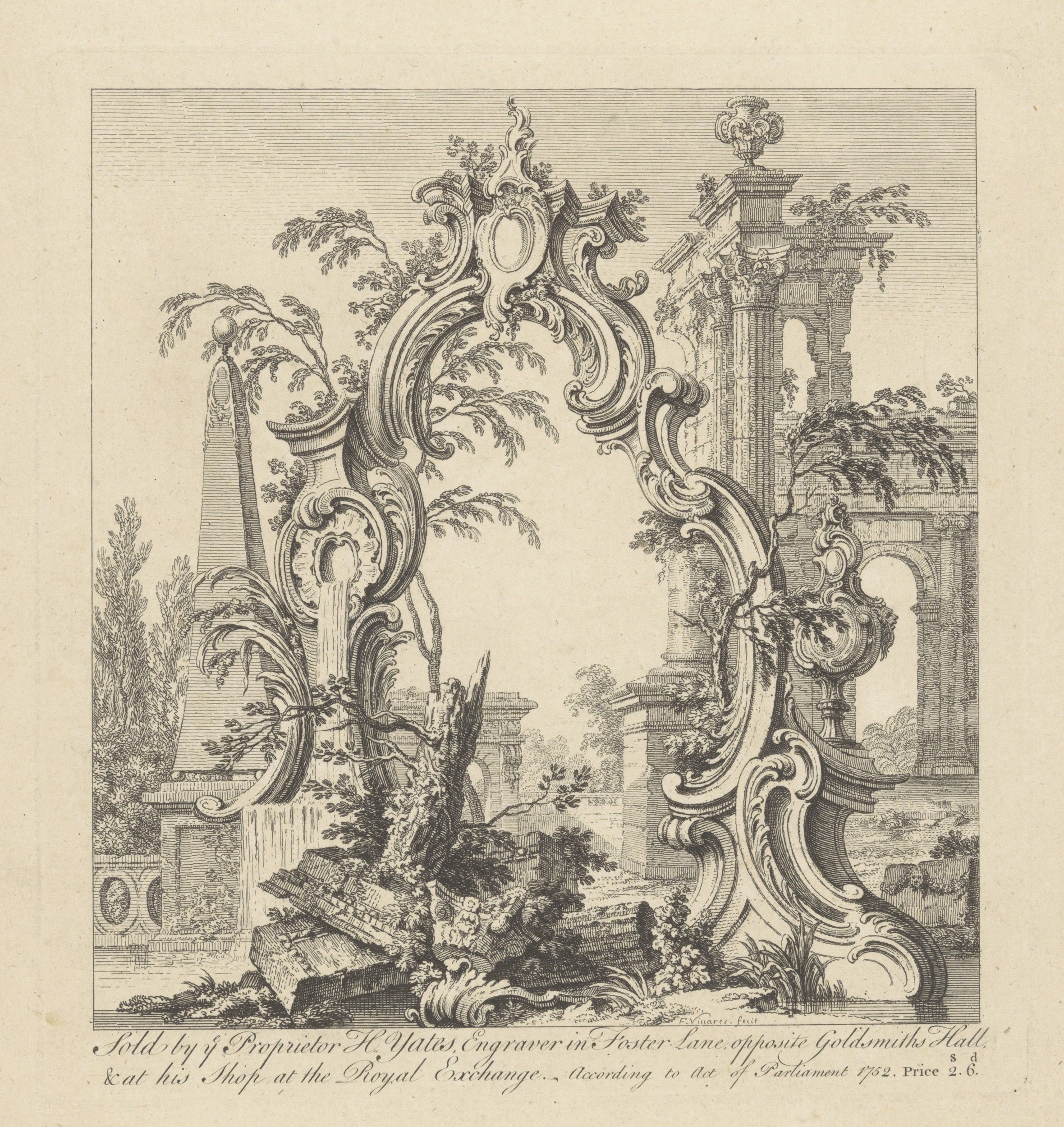 Cartouche in ruïnelandschap