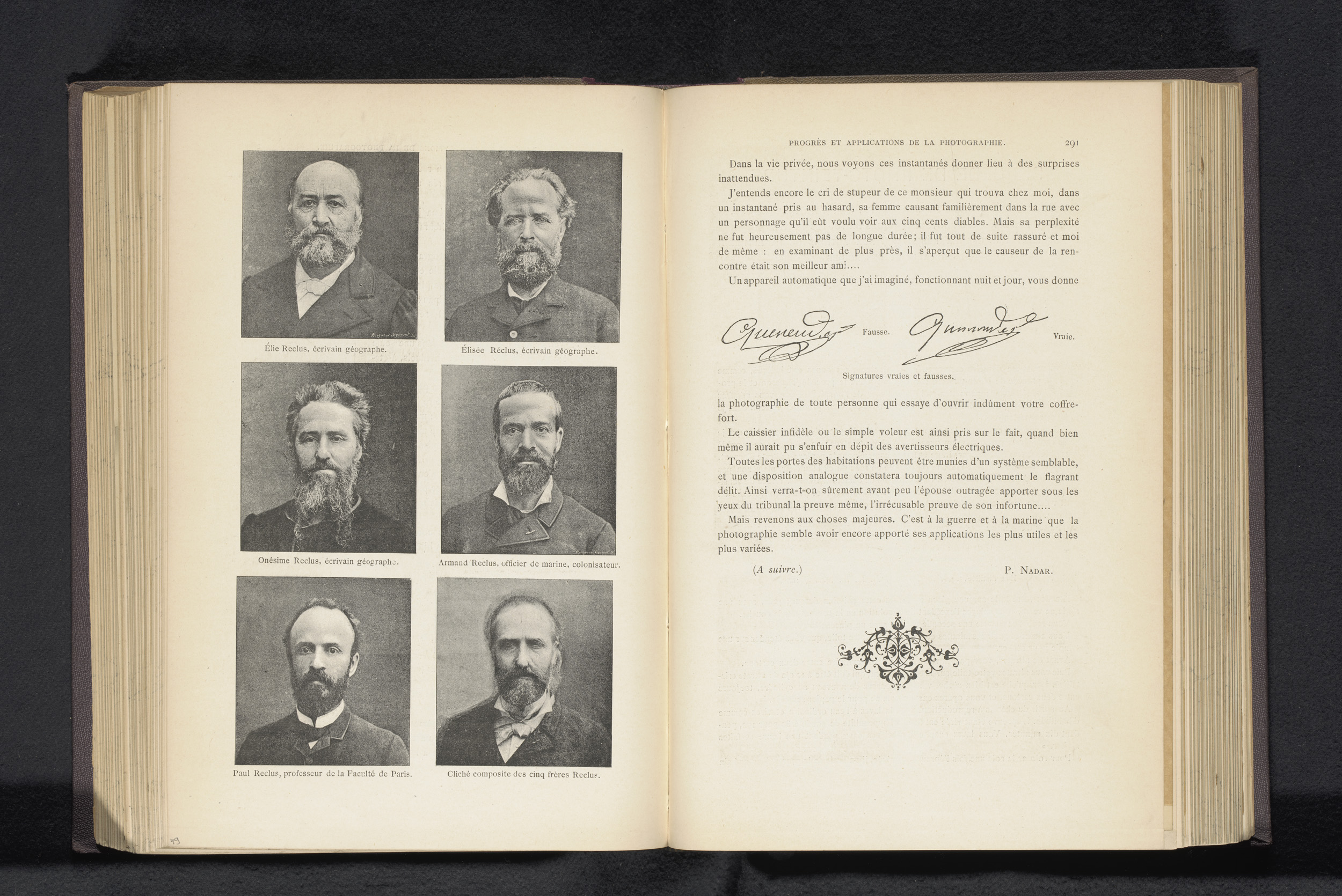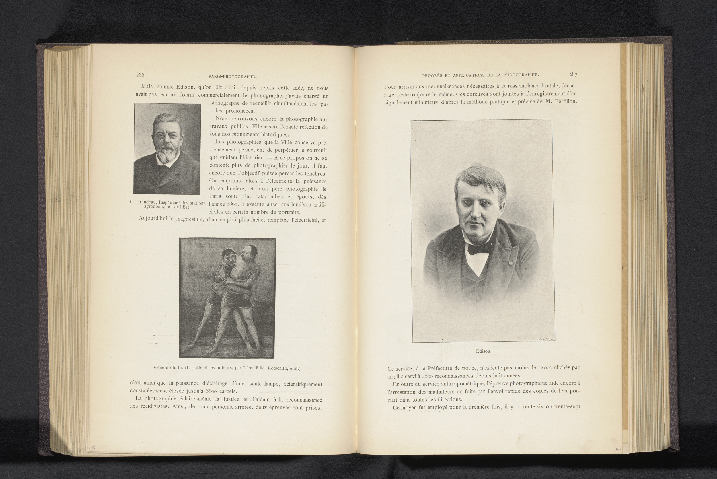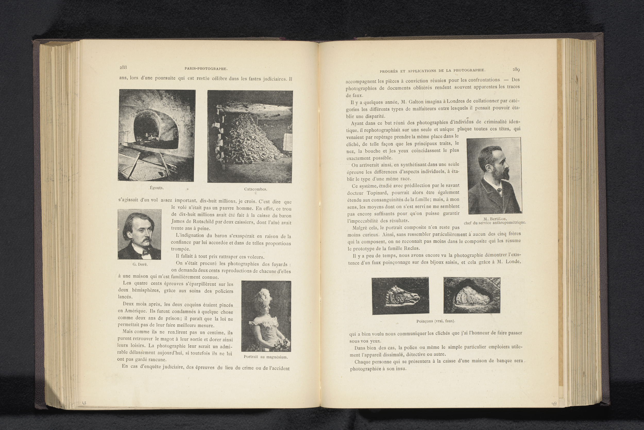 Portret van Alphonse Bertillon en twee opnamen van e...