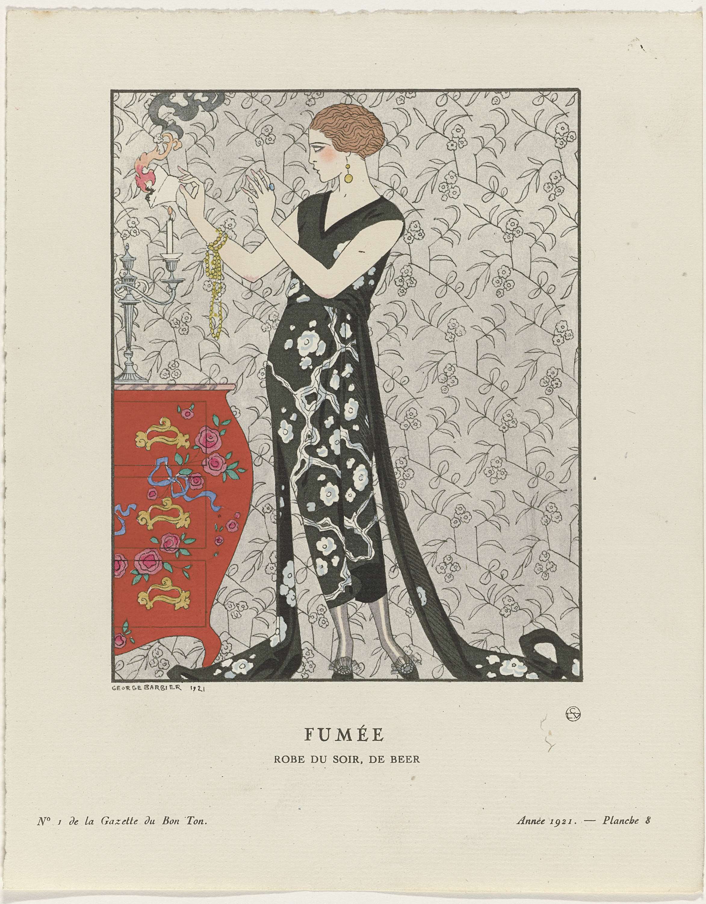 Gazette du Bon Ton, 1921 - No. 1, Pl. 8: Fumée / Rob...