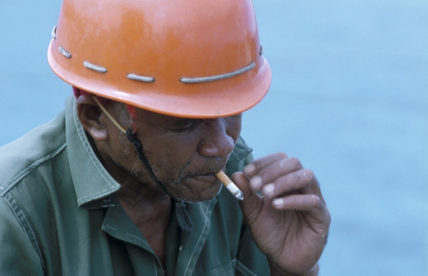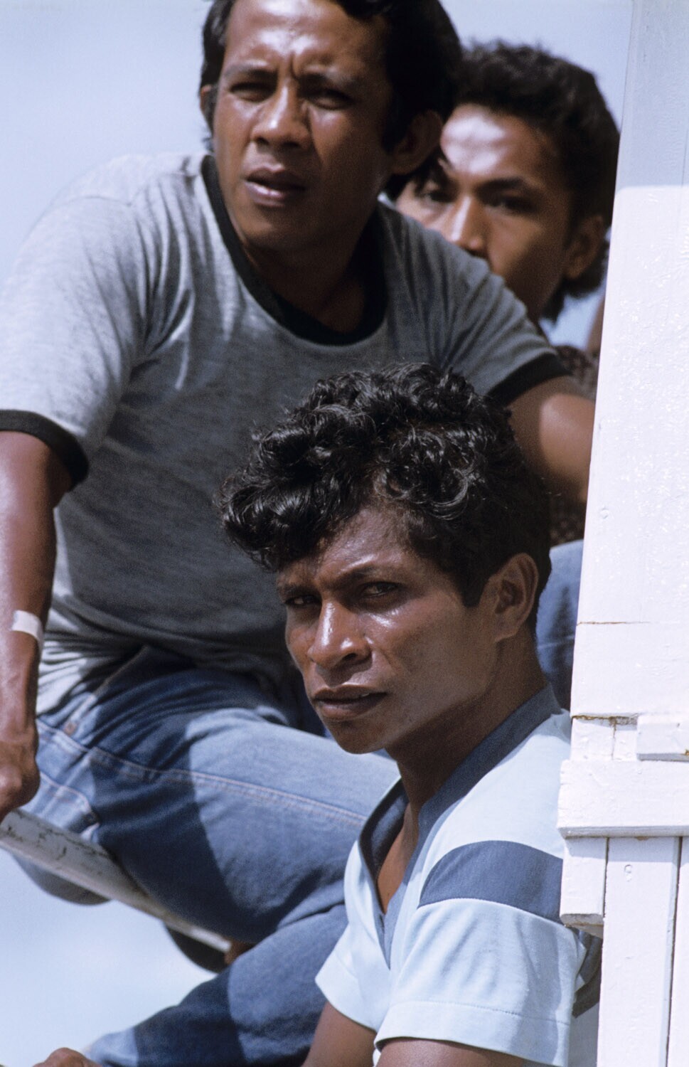 Close-up van een visser, Tulehu op Ambon, Molukken.