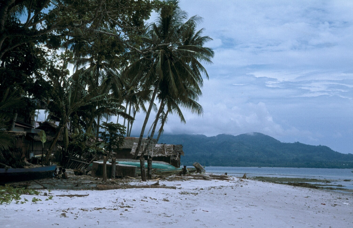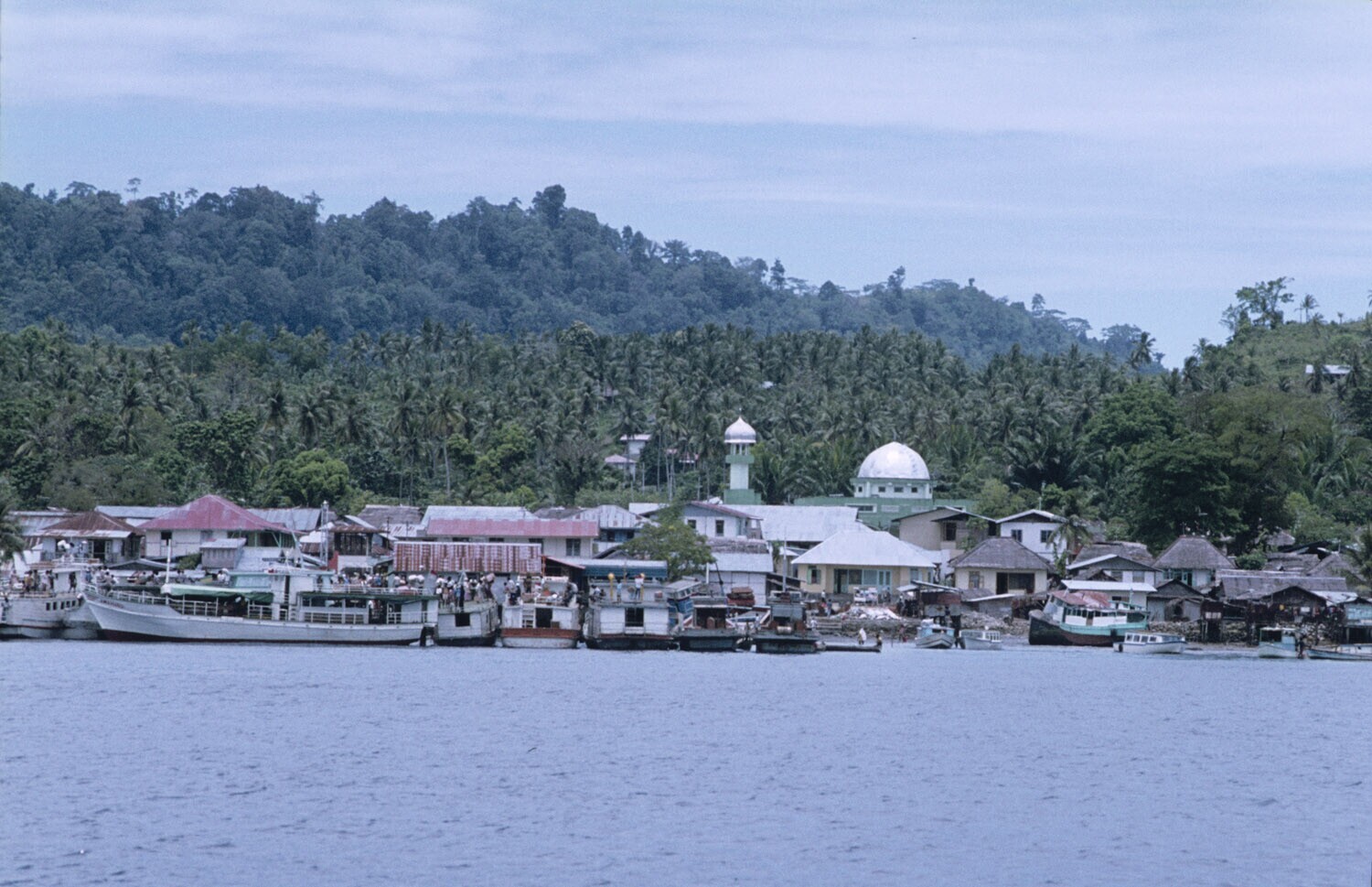 De moskee gezien vanuit de zee, Tulehu op Ambon, Mol...