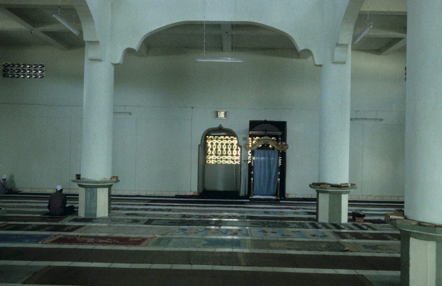 Interieur van de moskee in Tulehu op Ambon, Molukken.