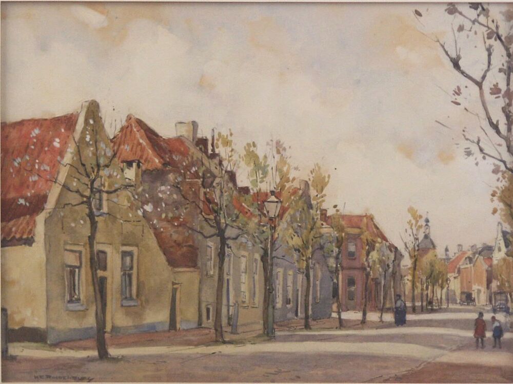 Aquarel, voorstellende de westelijke huizenwand in d...