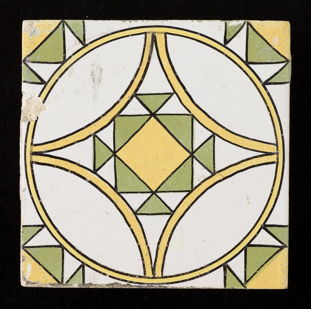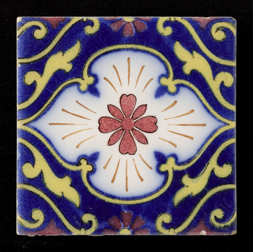Tegel van keramiek, tinglazuur, voorstellende orname...