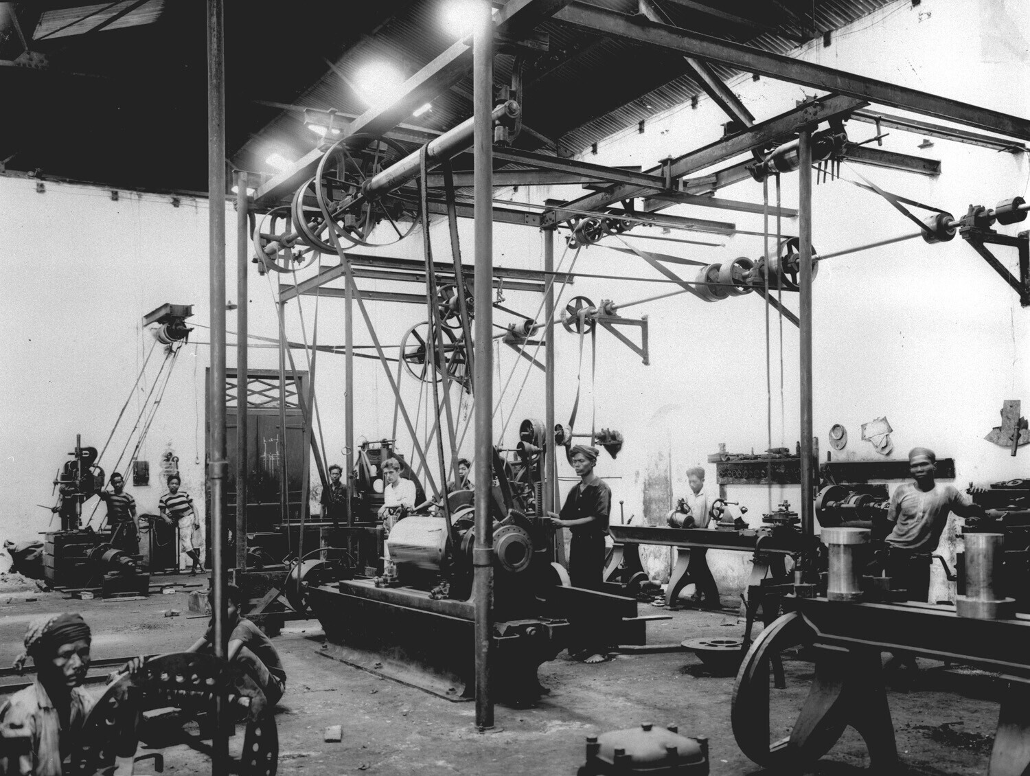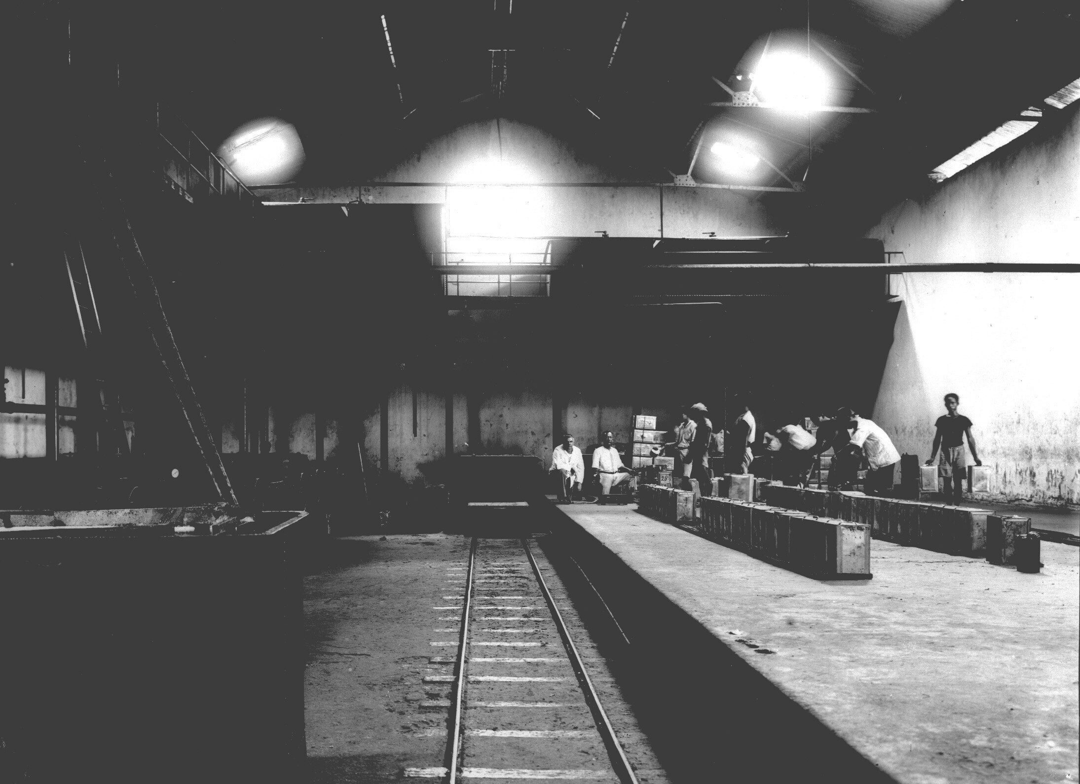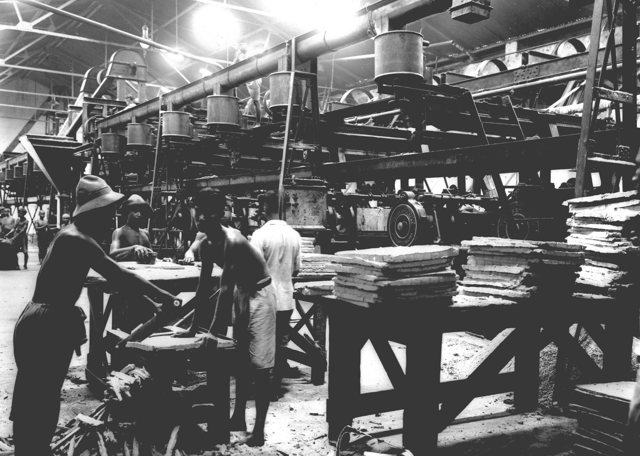 Mannen in de werkplaats van de Mexolie Fabrieken te ...