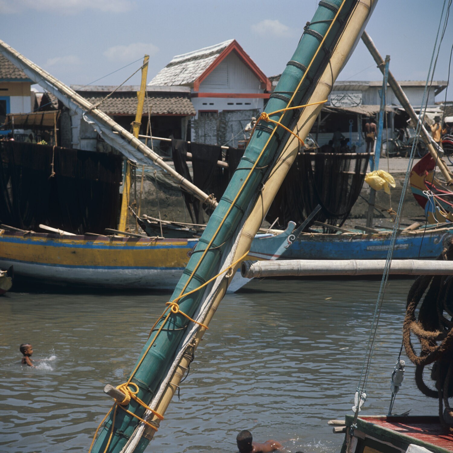 Zeilschepen aan de kade bij Pasoeroen