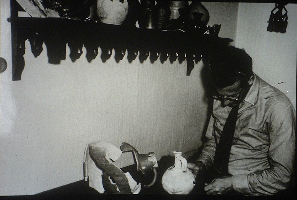 Amateur archeoloog Th H Janssen aan het werk.