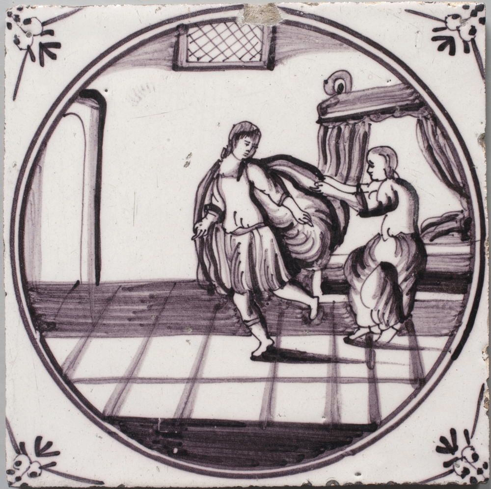 tegel van aardewerk met tinglazuur, voorstellende: A...
