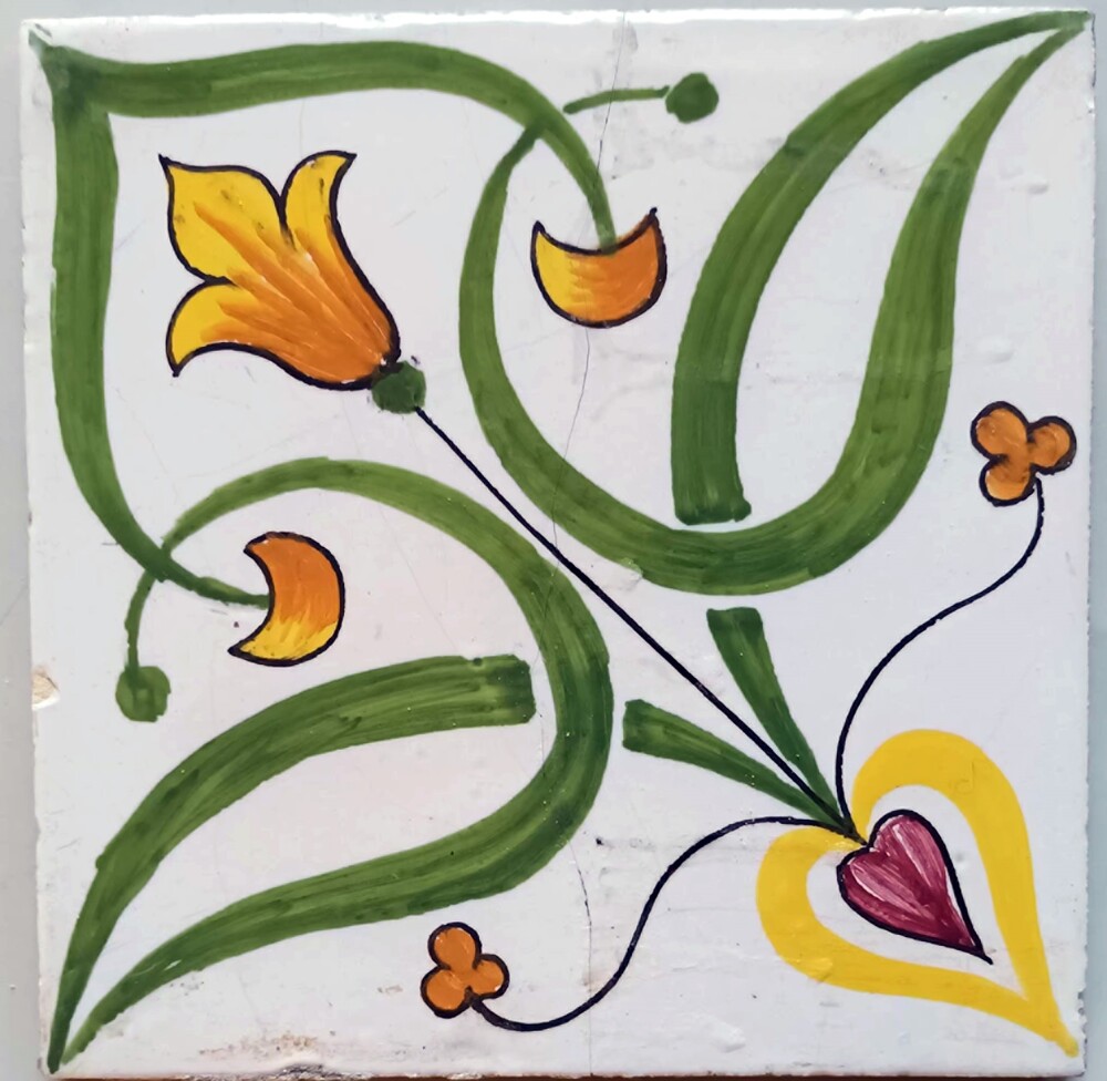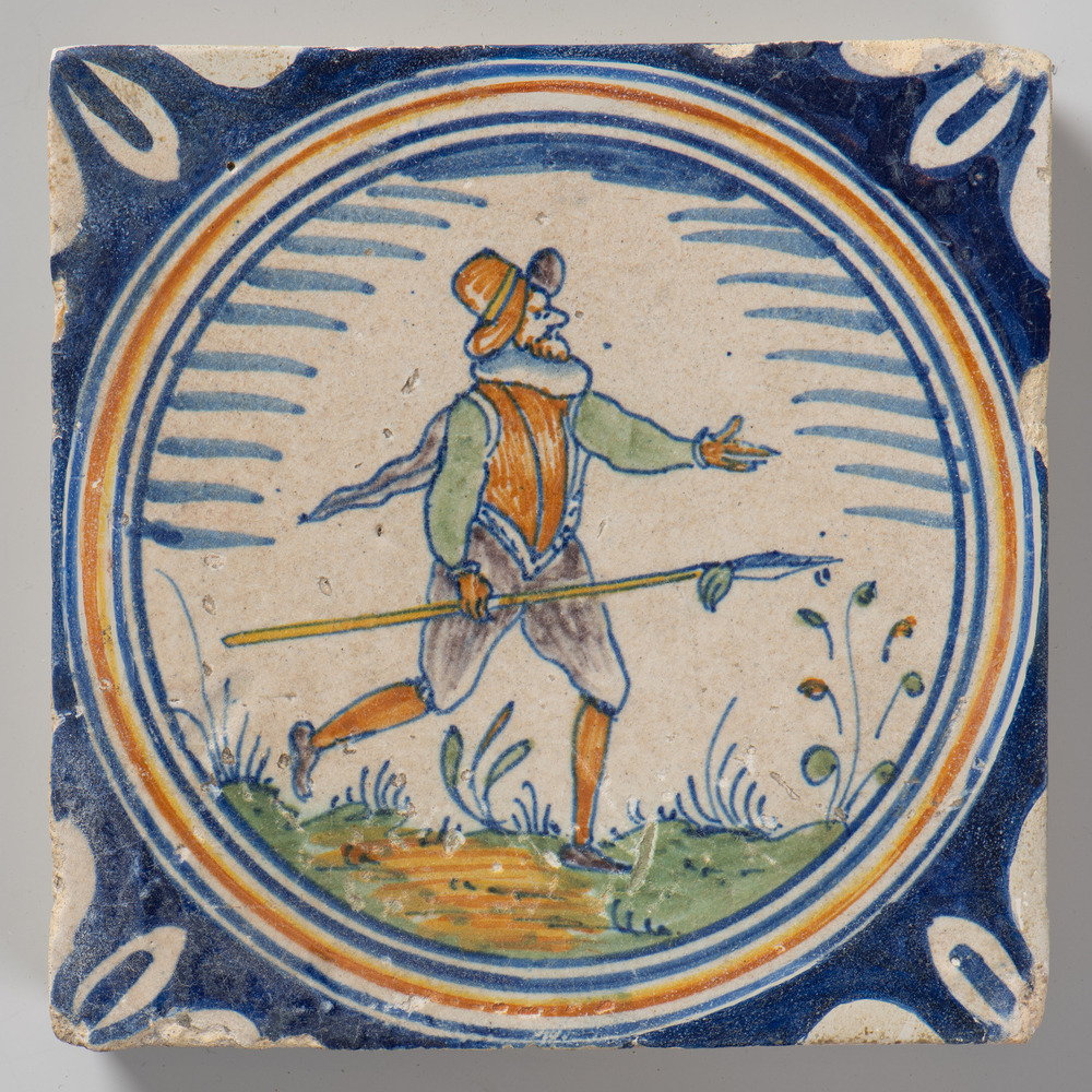 tegel van keramiek met tinglazuur, voorstellende: ja...