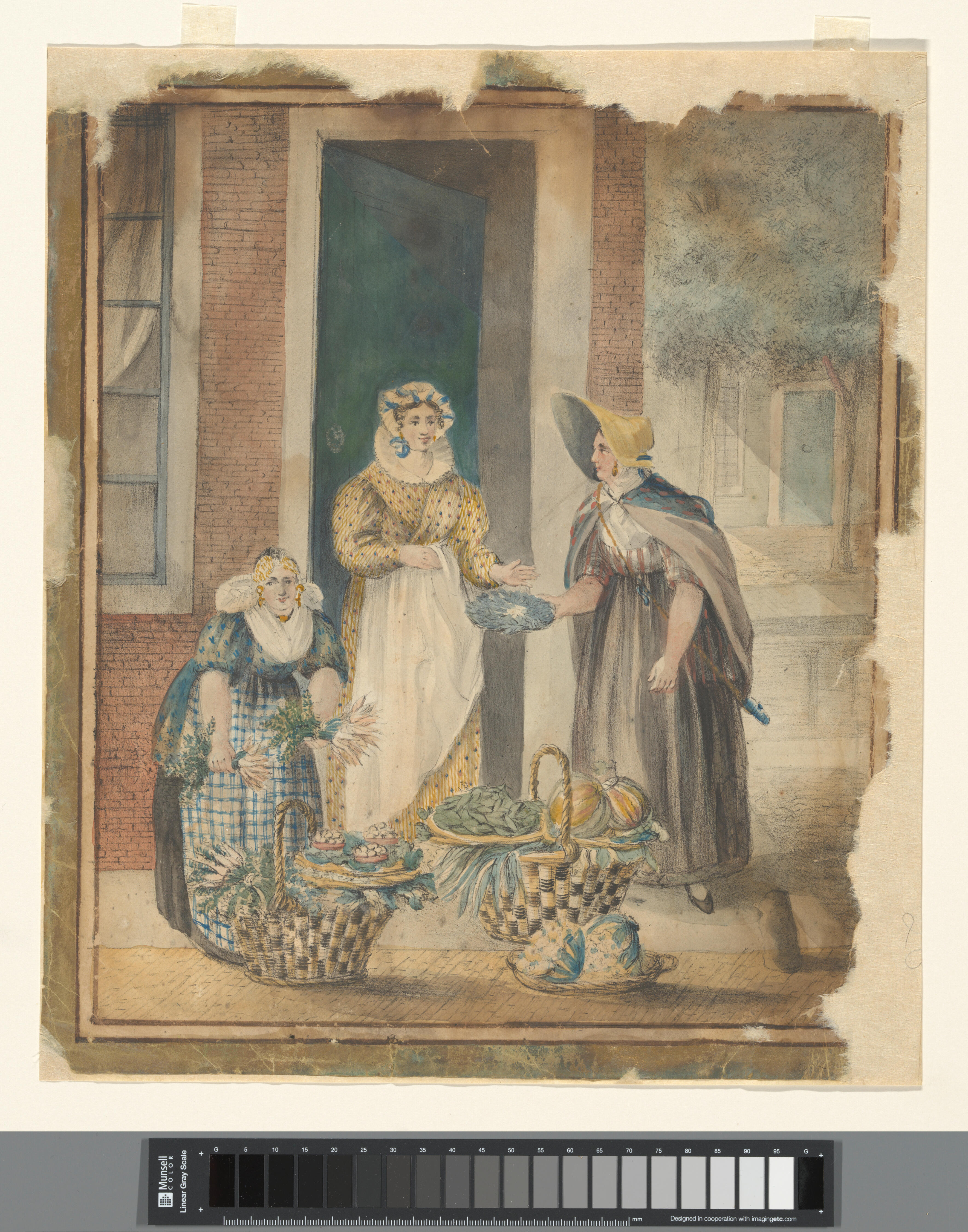 Aquarel van een groenteverkoopster, Friesland, circa...