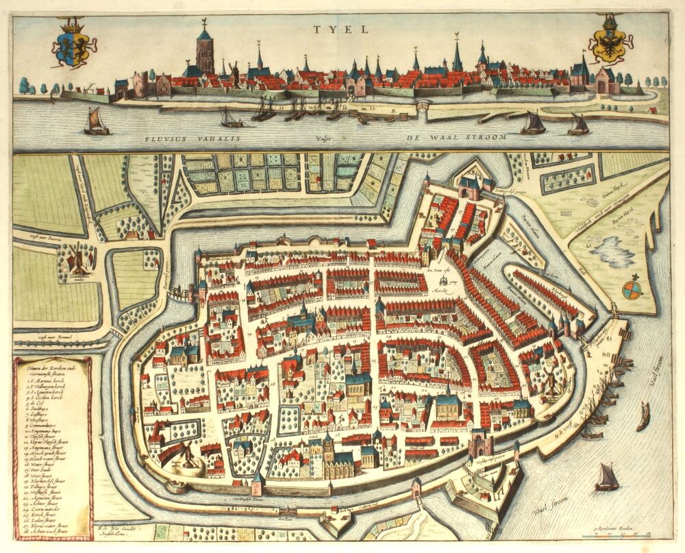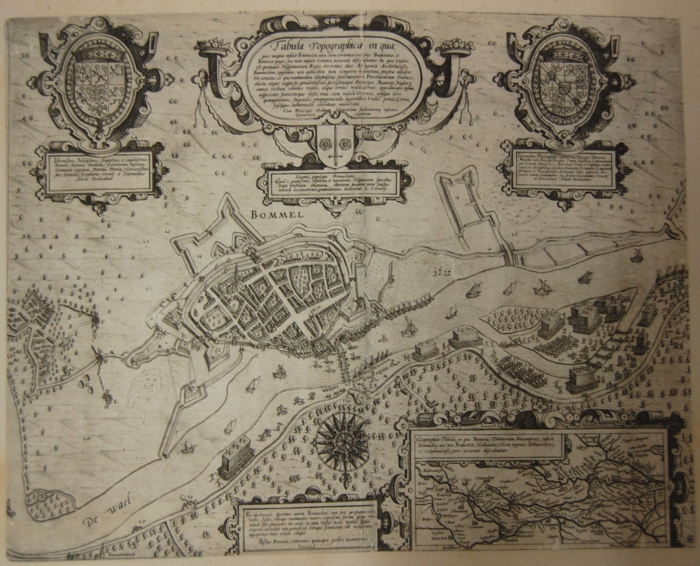 Vogelvlucht van Zaltbommel aan de Waal. Met troepenv...