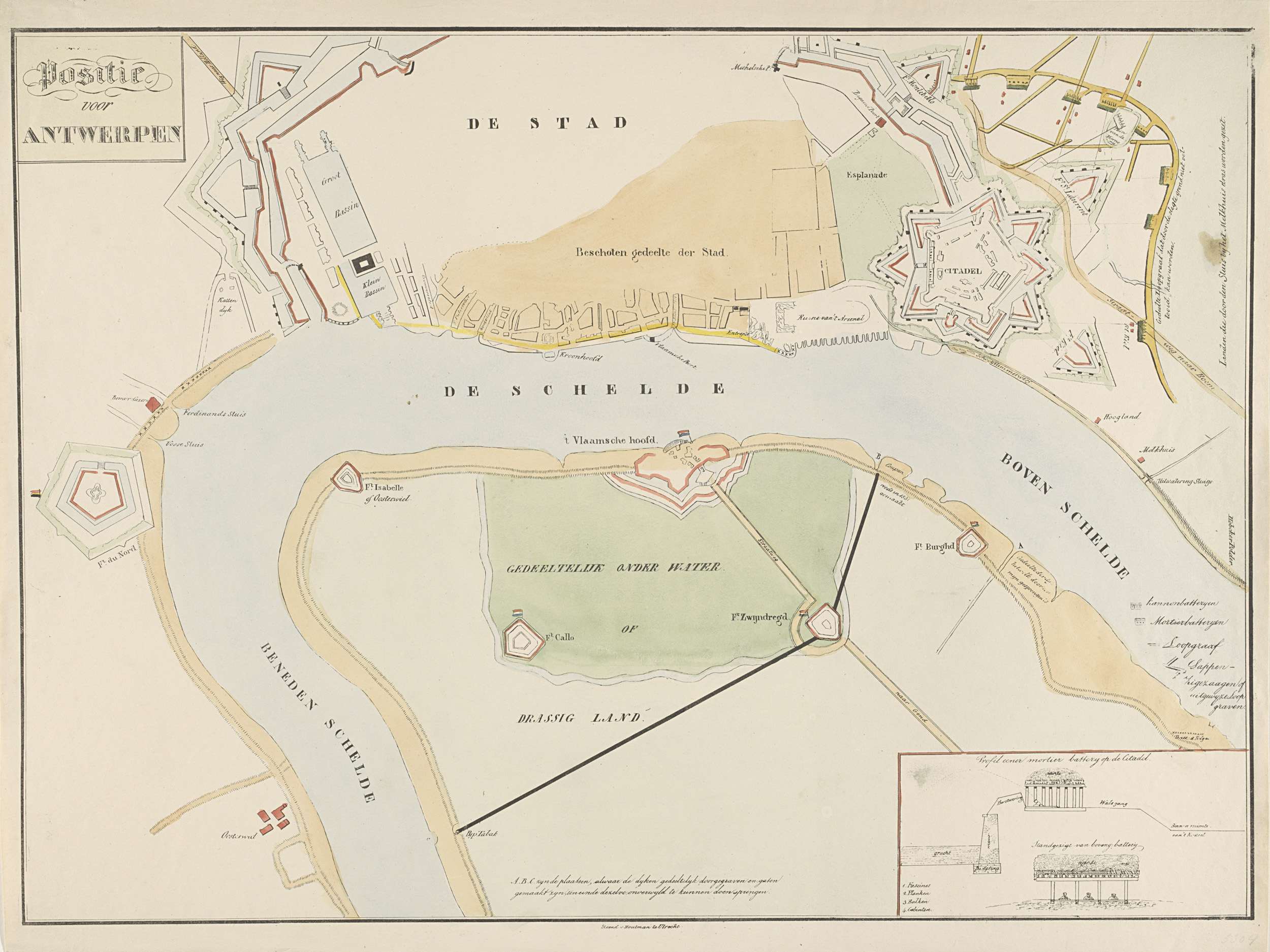Plan van de Schelde voor Antwerpen met de ligging va...