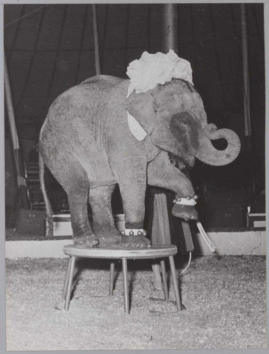 Olifanten Kludsky met Erwin Bauer en Mina Moré bij C...