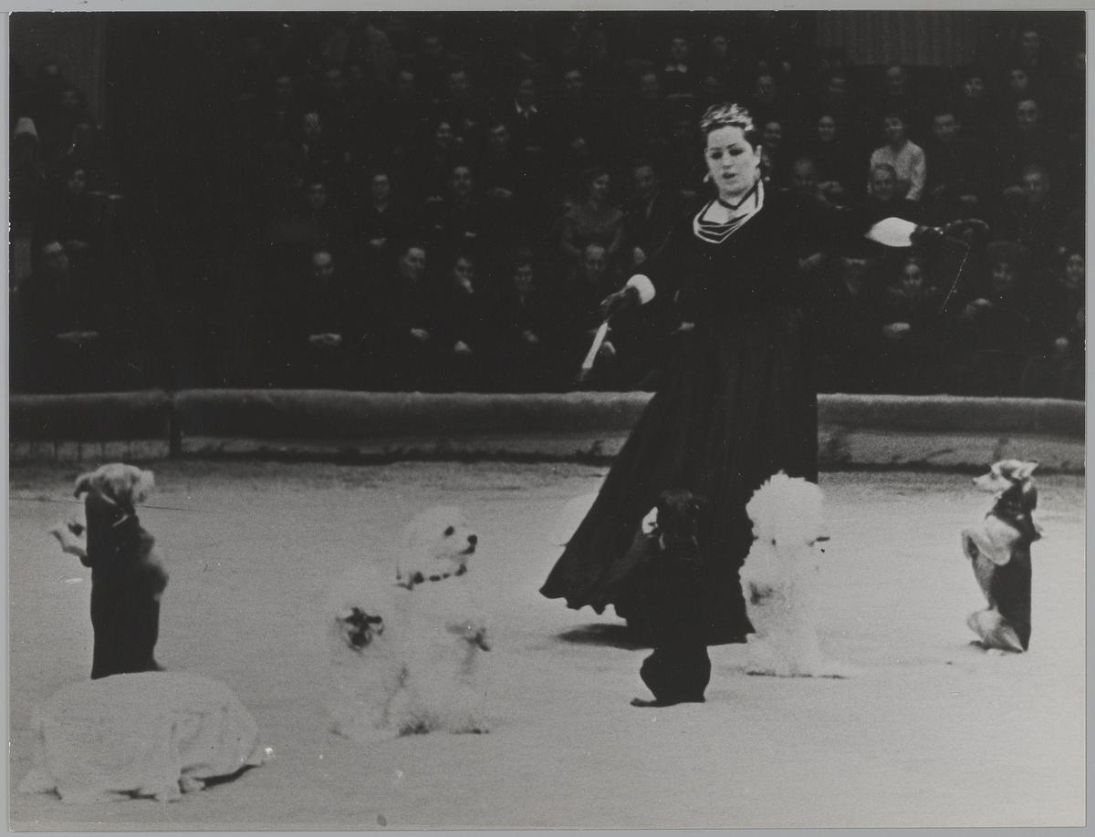 Staatscircus van Moskou. Solowkowa, hondendressuur. ...