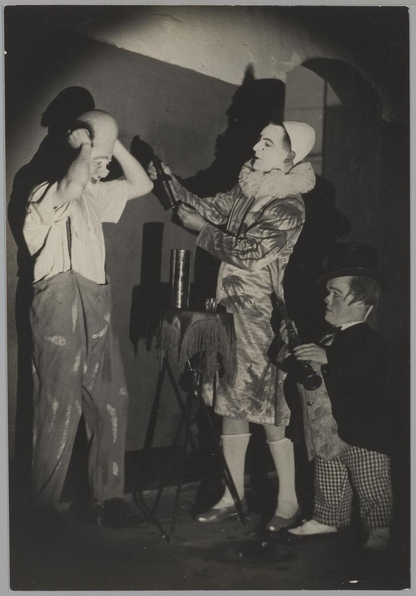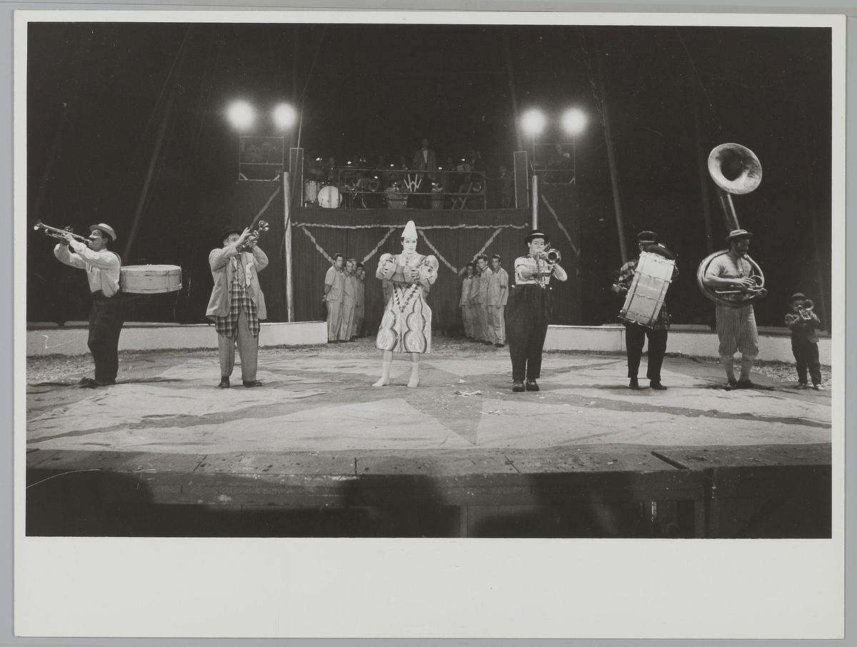 Circus P. Busch, groepje clowns, achter. Eigen gebou...