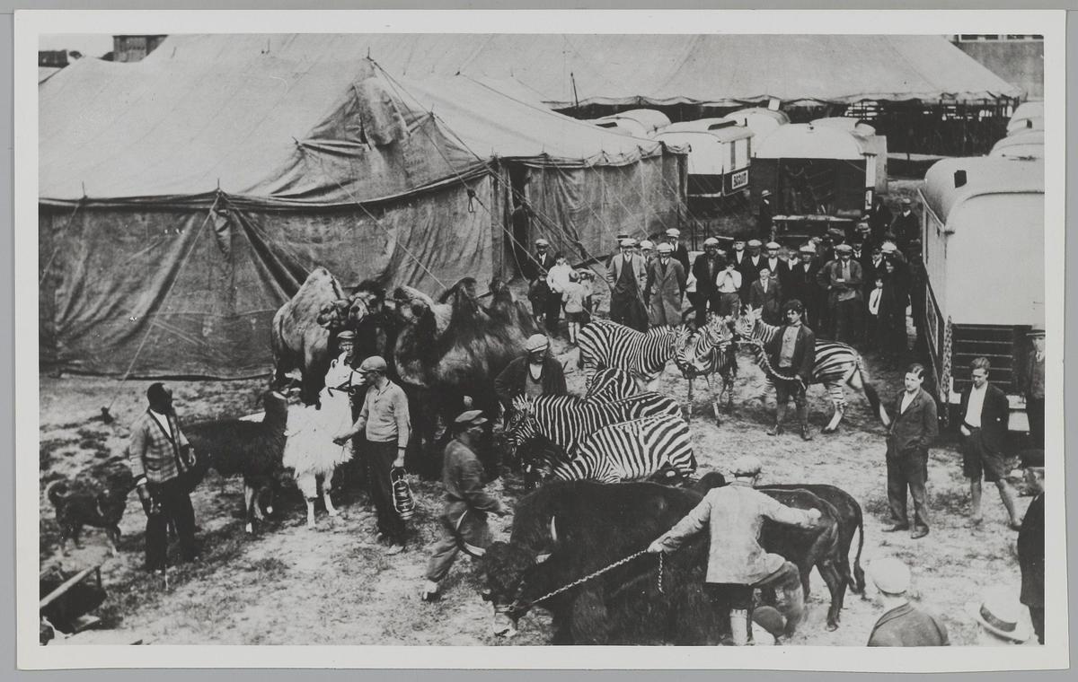 Aankomst van de exoten (kamelen, zebra's) op het cir...