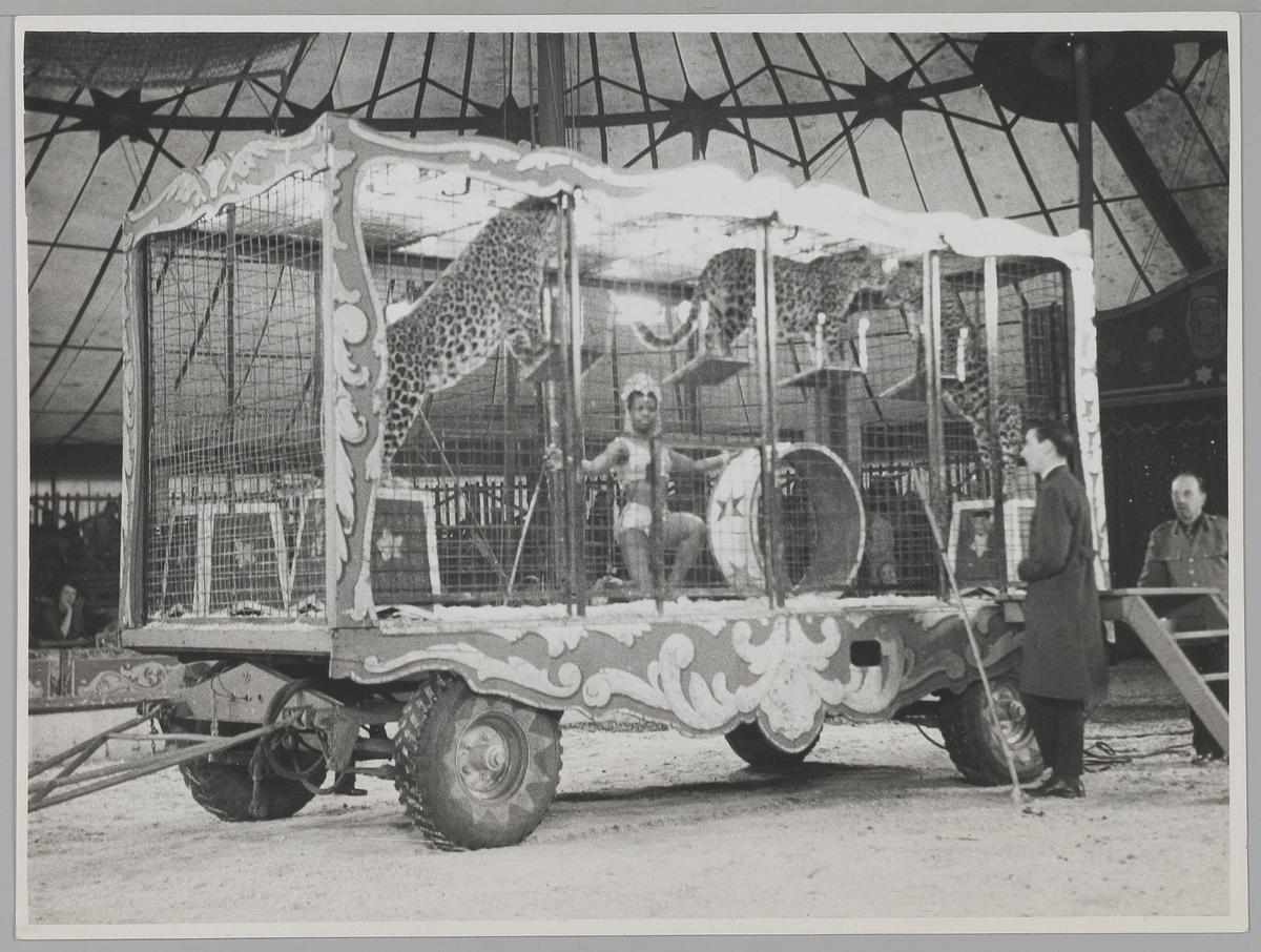 Dompteuse Zira met haar drie luipaarden, Circus Chip...