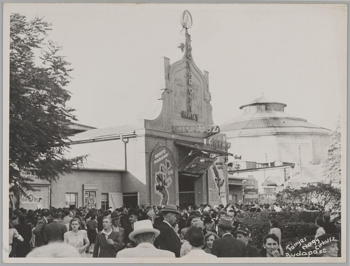 Publiek bij de ingang van de tent van Circus Föváros...