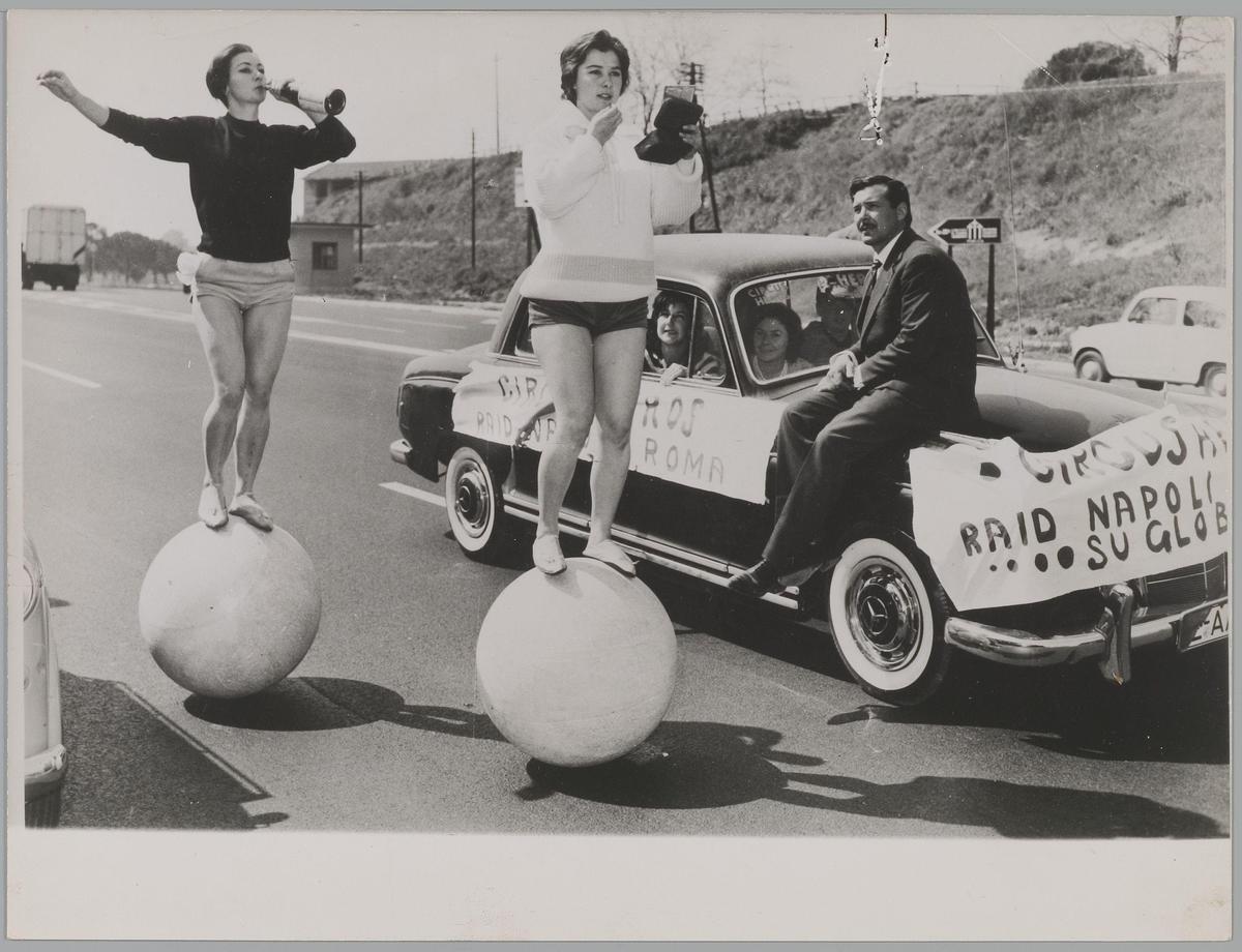 Twee acrobaten van Circus Heros. Raid Napoli - Roma
