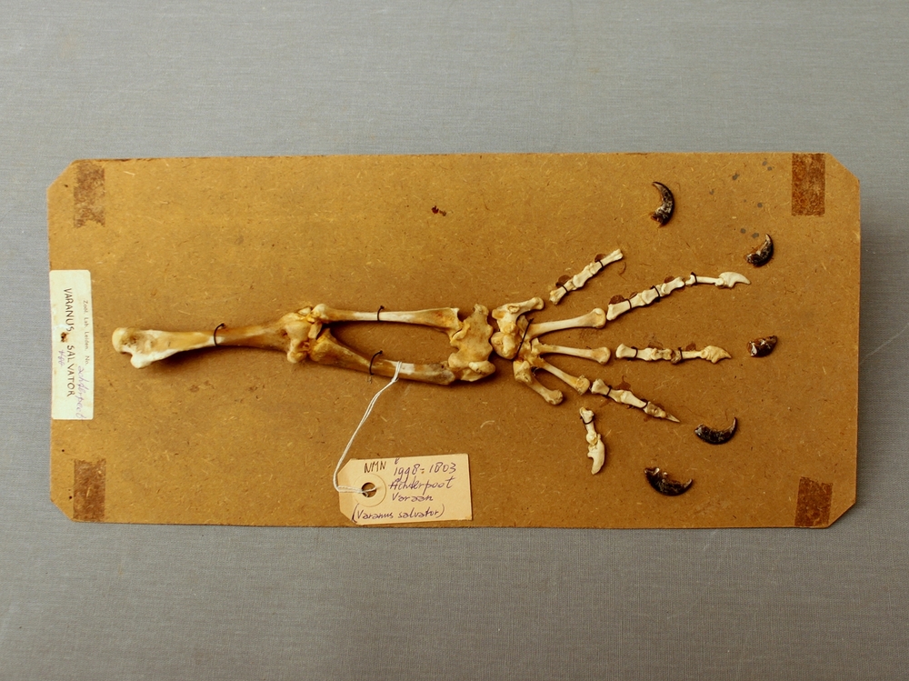 Watervaraan; skelet achterpoot; op strokarton