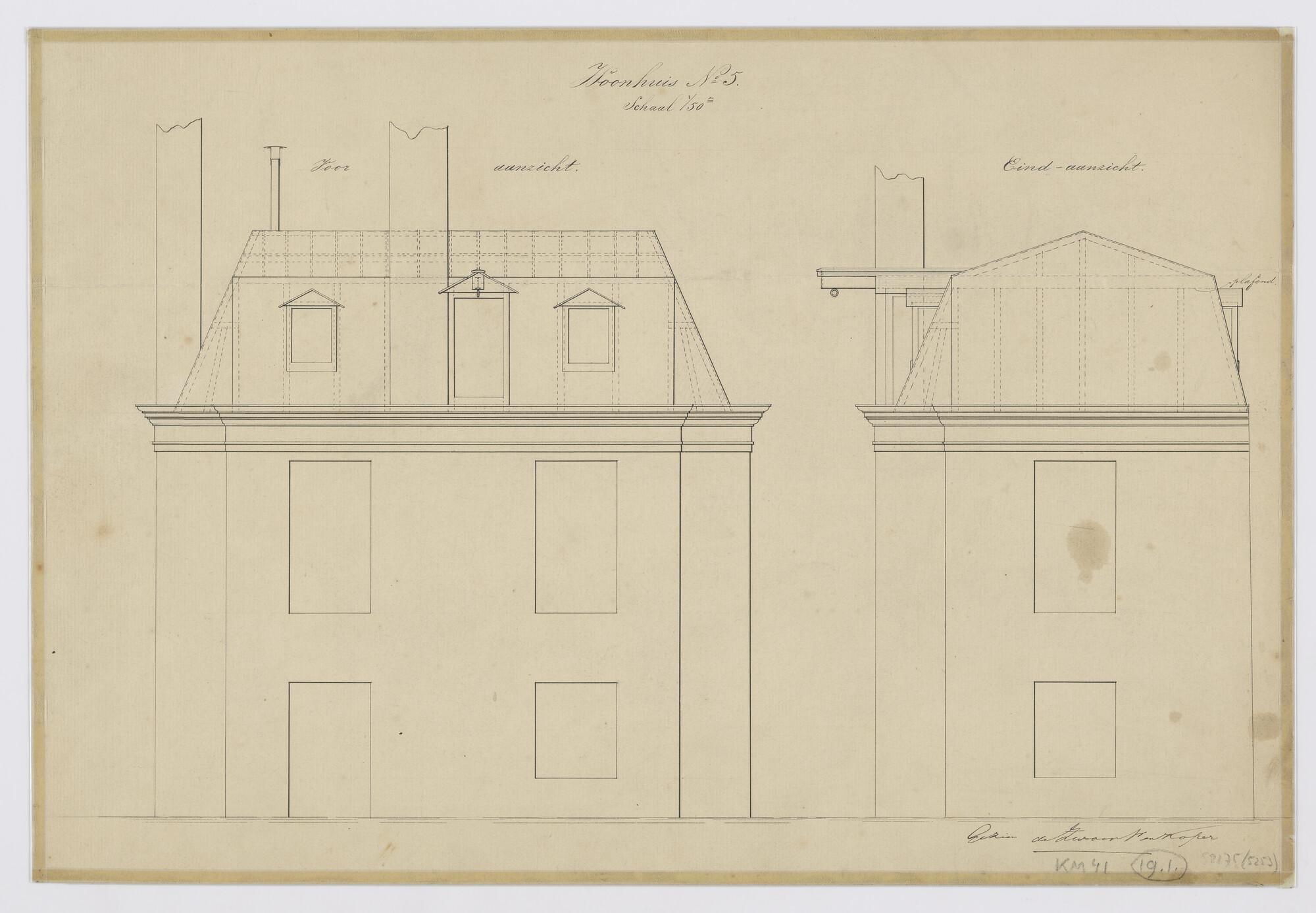 Vooraanzicht en eindaanzicht woonhuis nr. 5 (o.m. de...