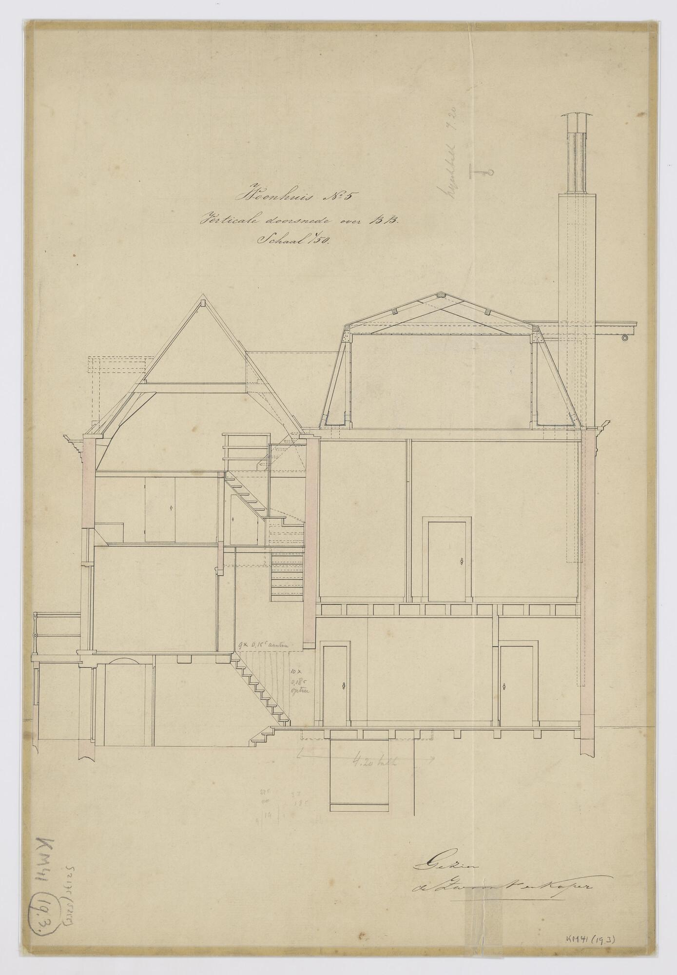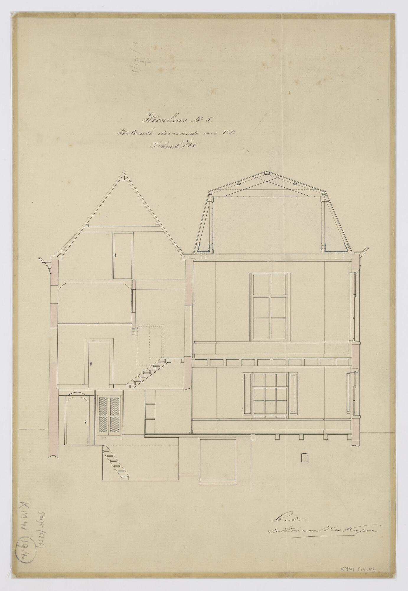 Verticale doorsnede woonhuis nr. 5 (o.m. de uitbouw)...