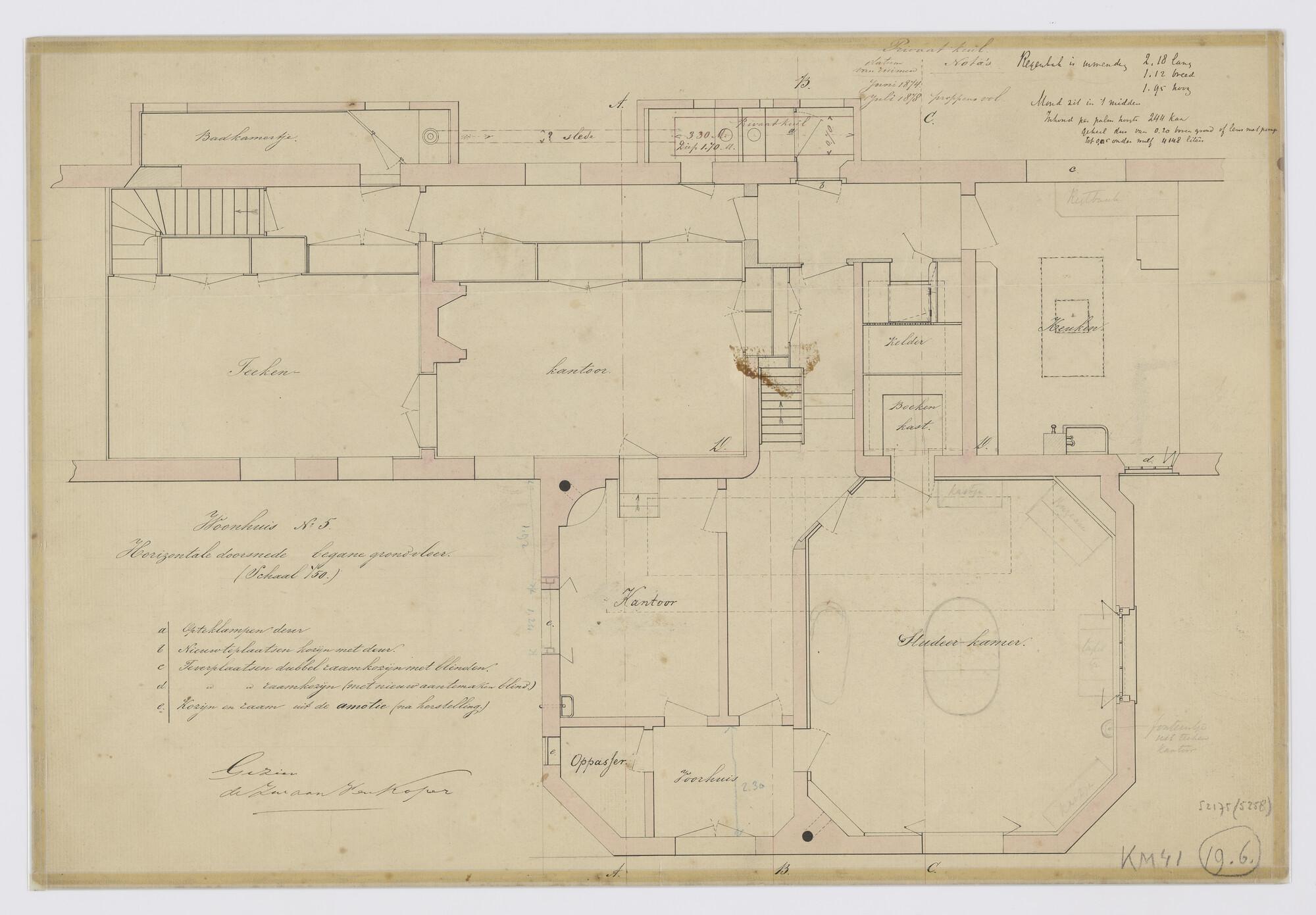 Indelingstekening begane grond woonhuis nr. 5 (o.m. ...