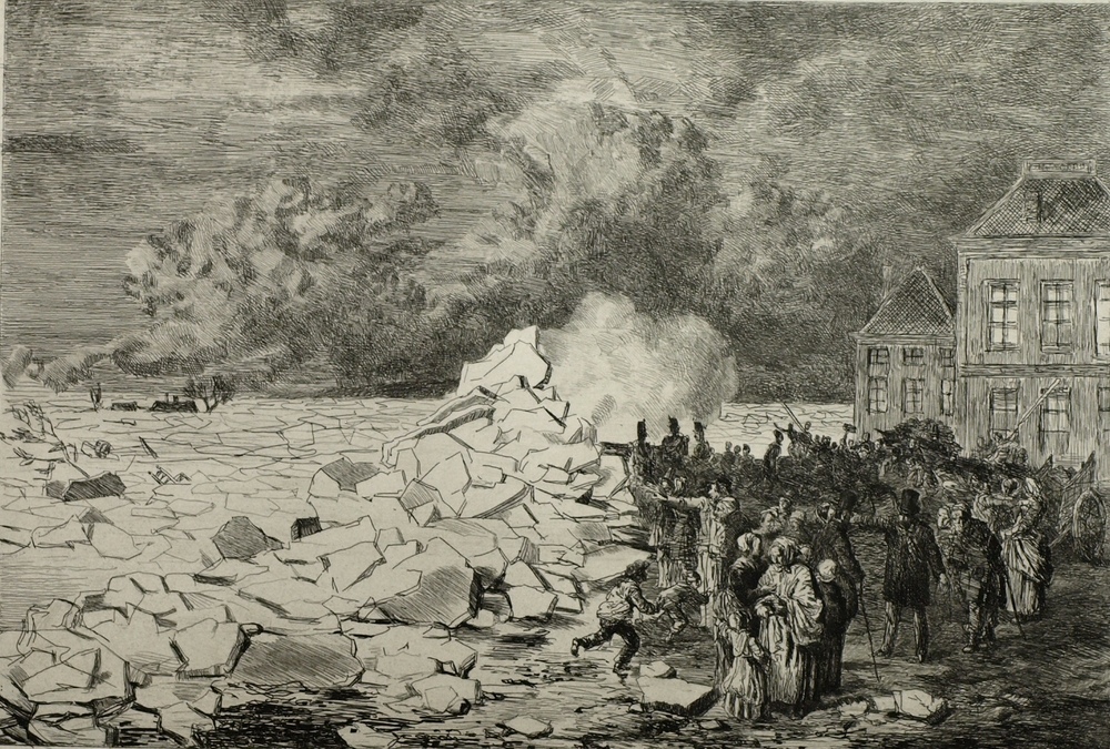 Gezicht op het kruien van het ijs voor de Sabelpoort...