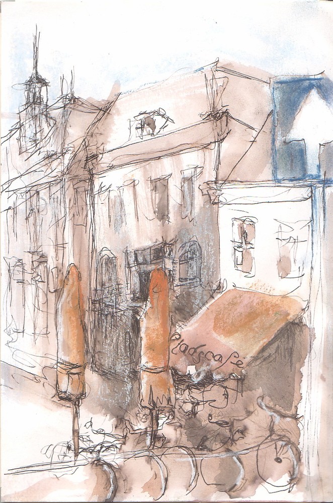 Gezicht op het stadscafe en het stadhuis