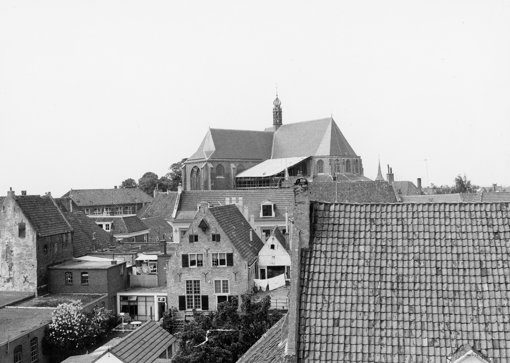Achterzijde Donkerstraat met zicht op de Grote Kerk
