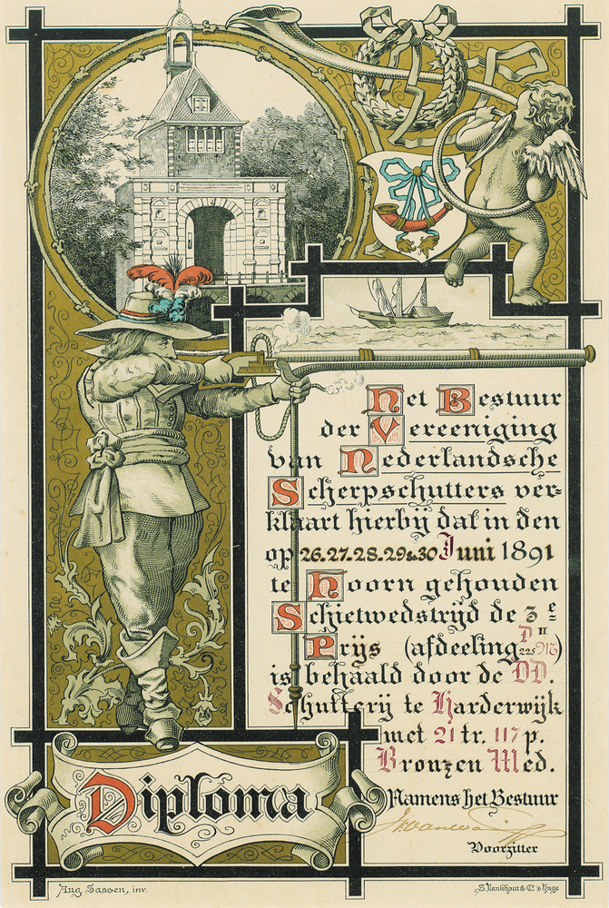 Diploma voor de dienstdoende schutterij te Harderwij...