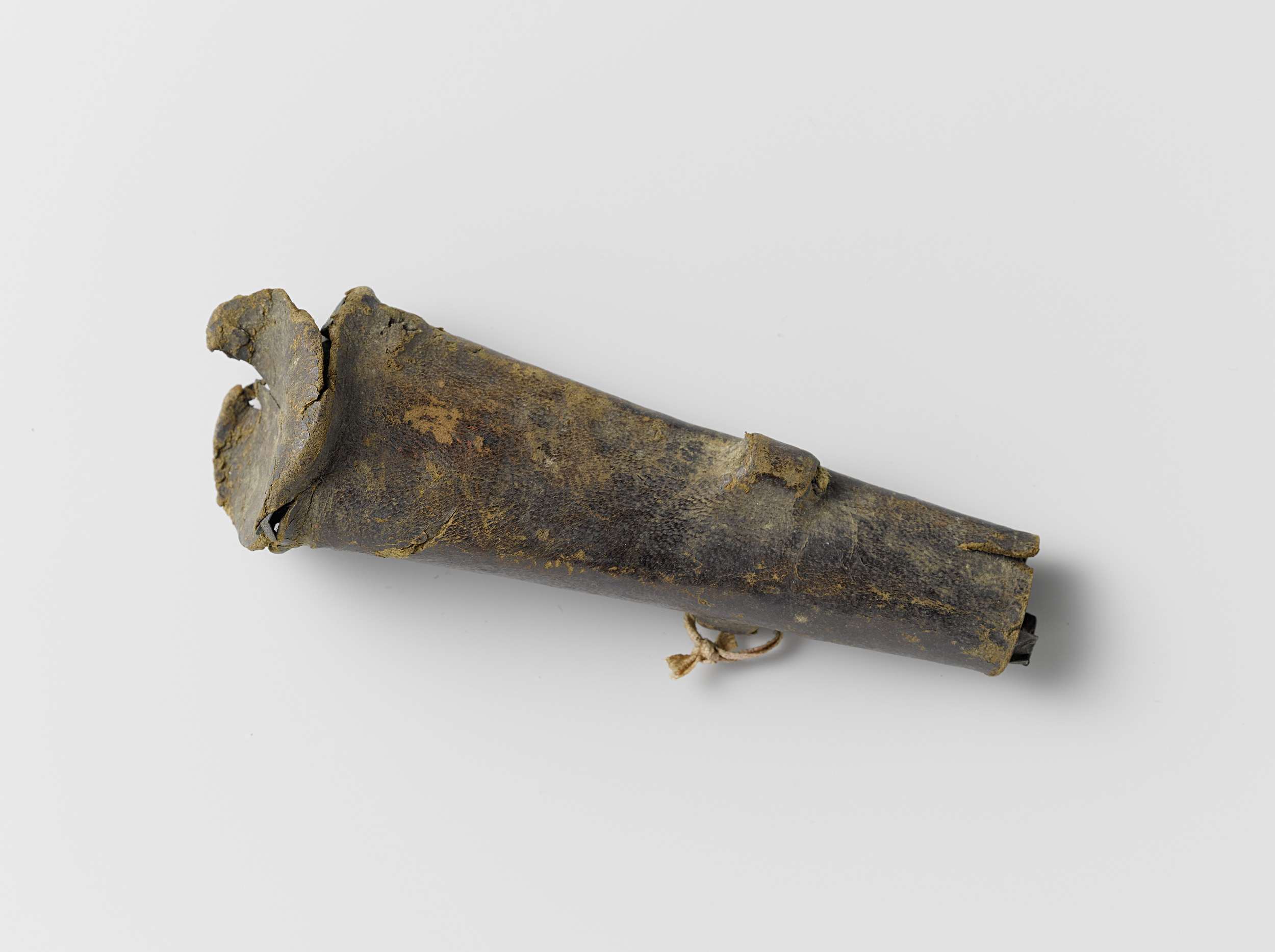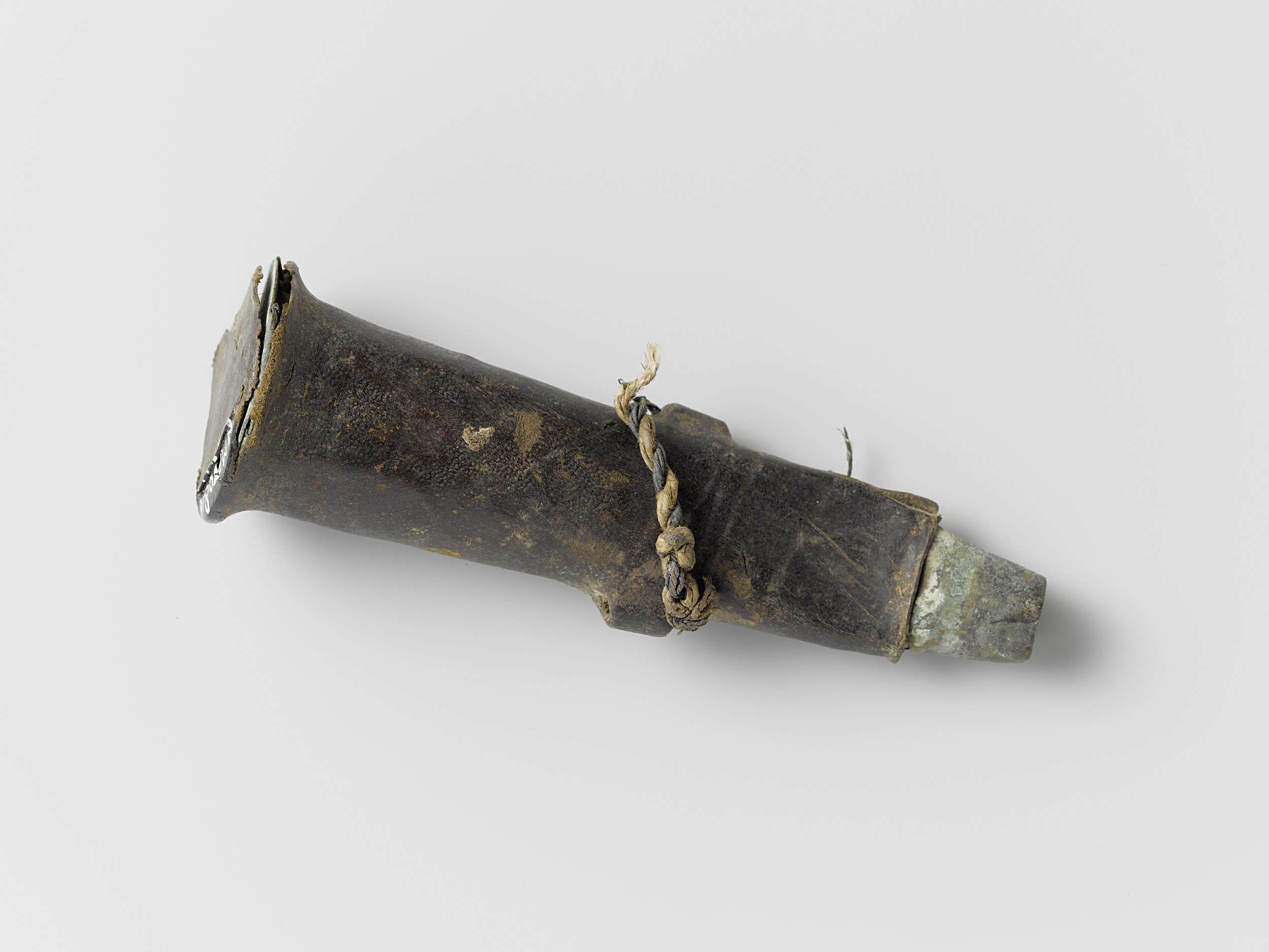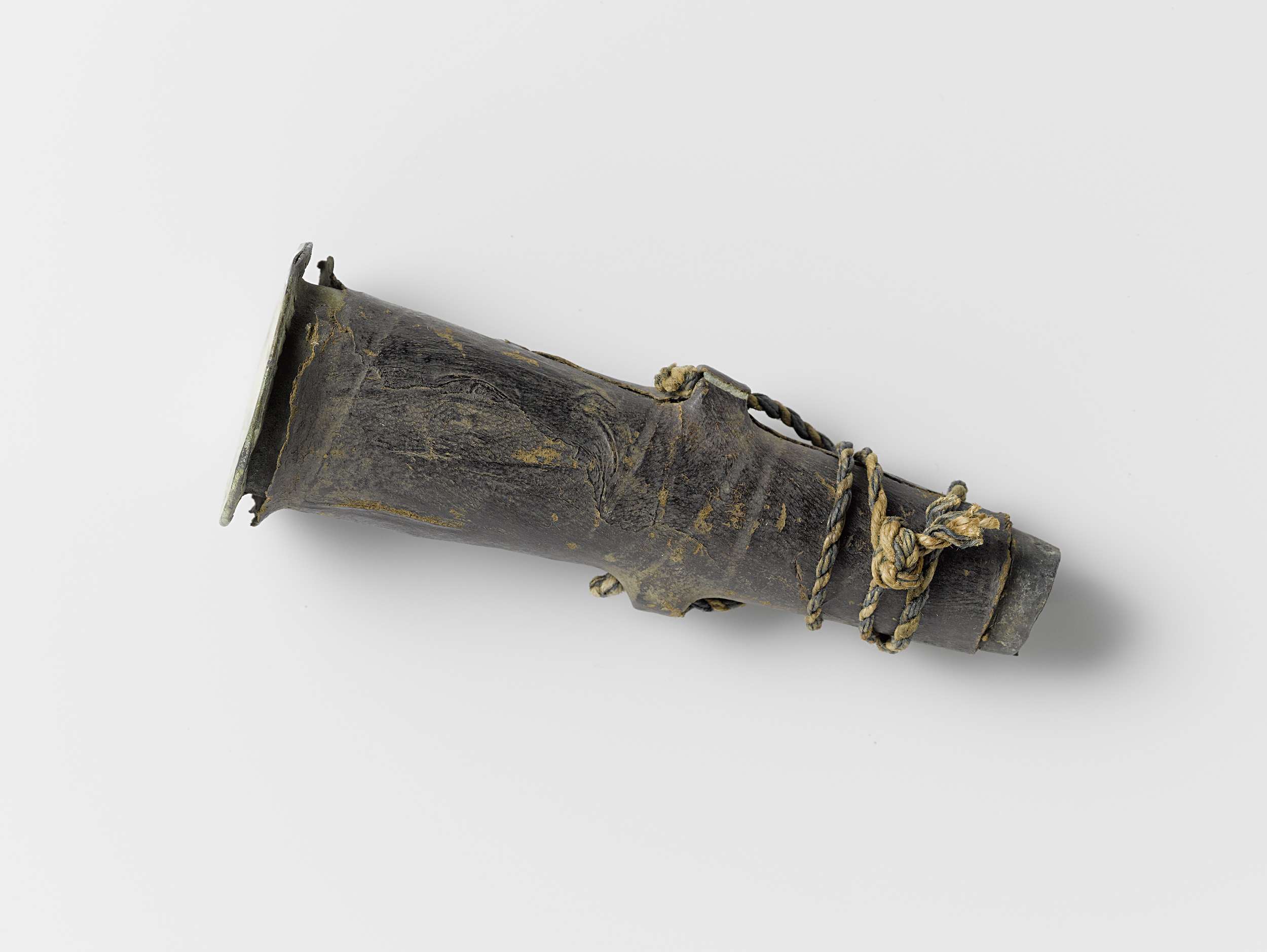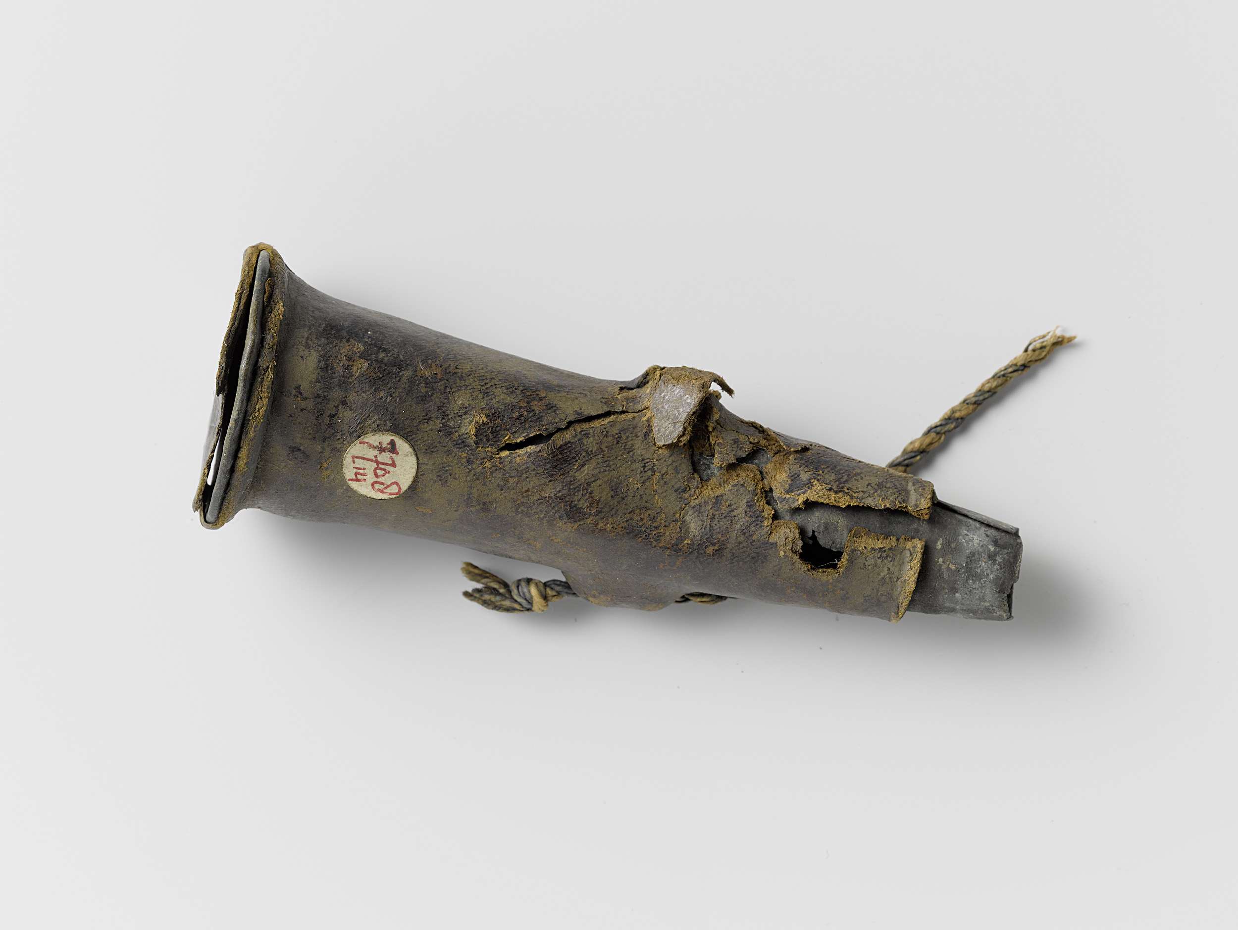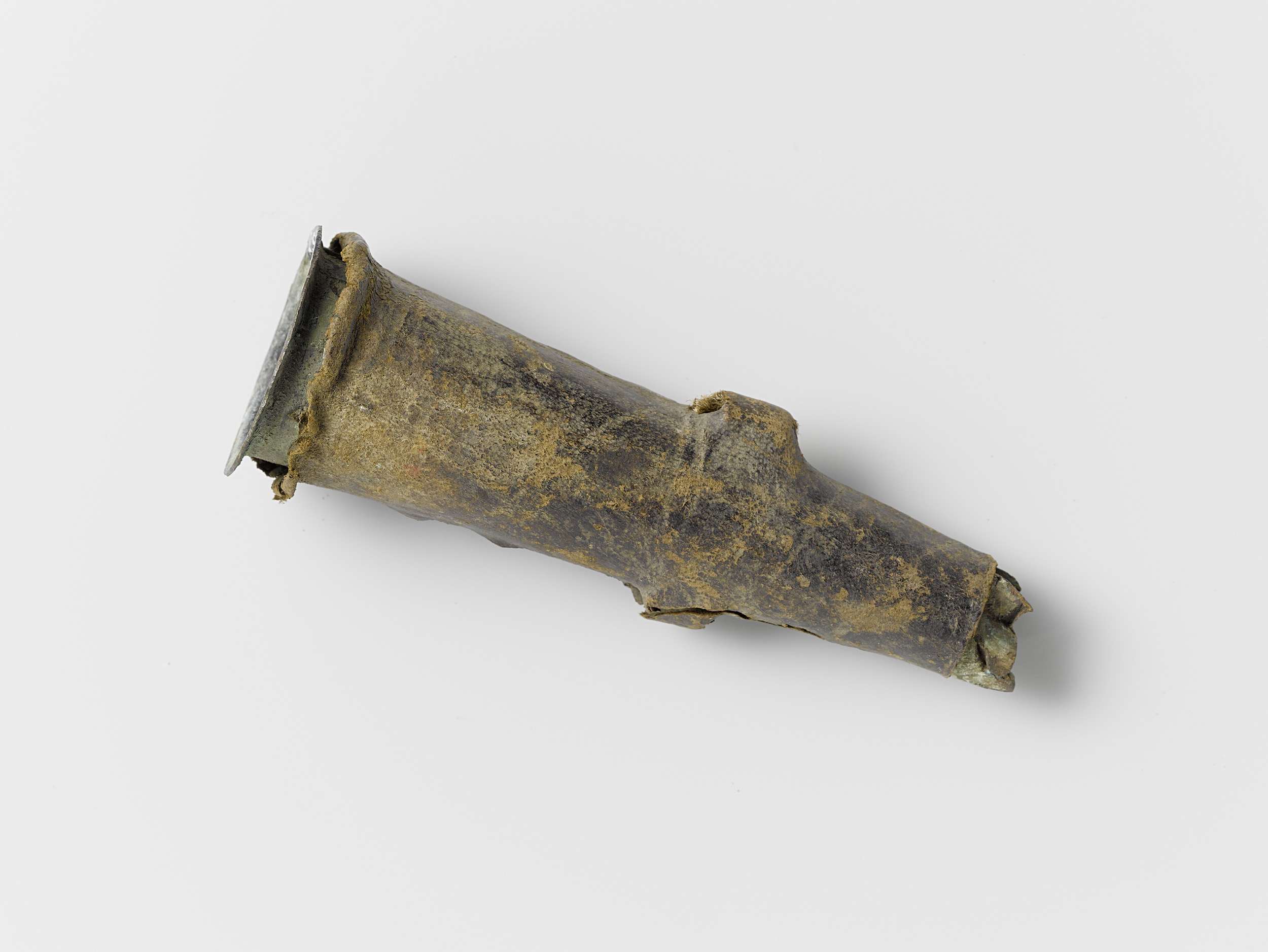 Musketmaat, fragment bestaande uit leren onderkant m...
