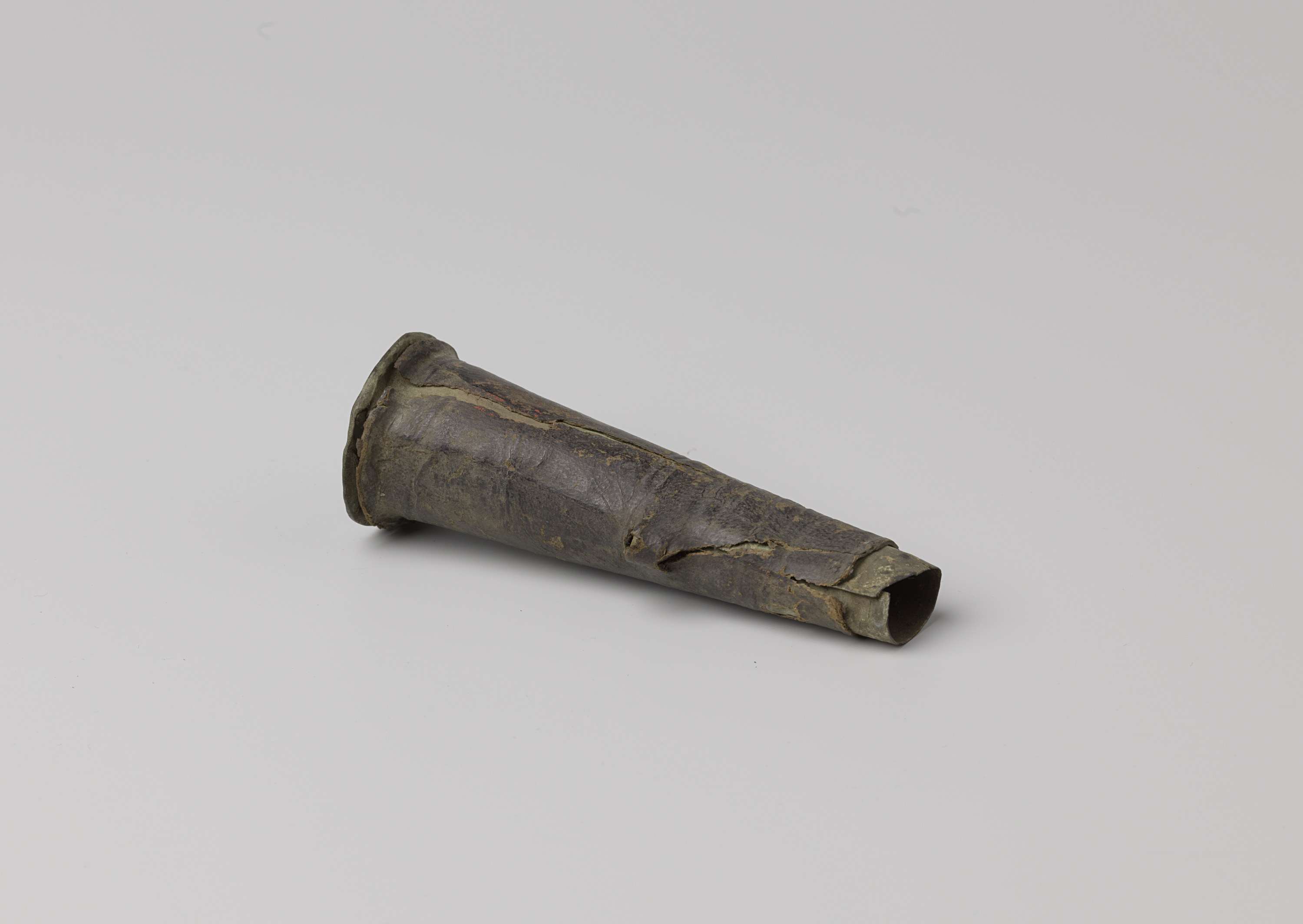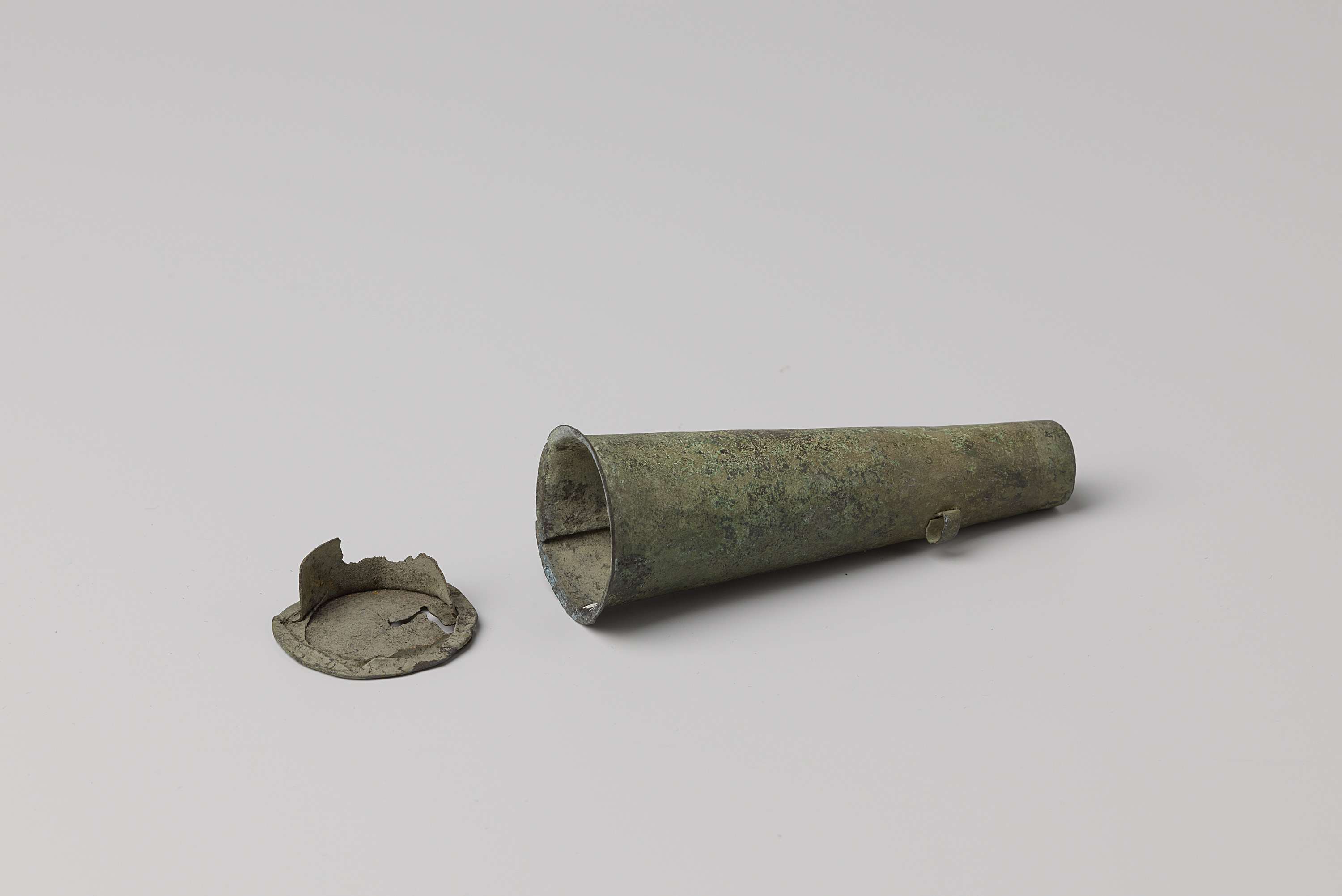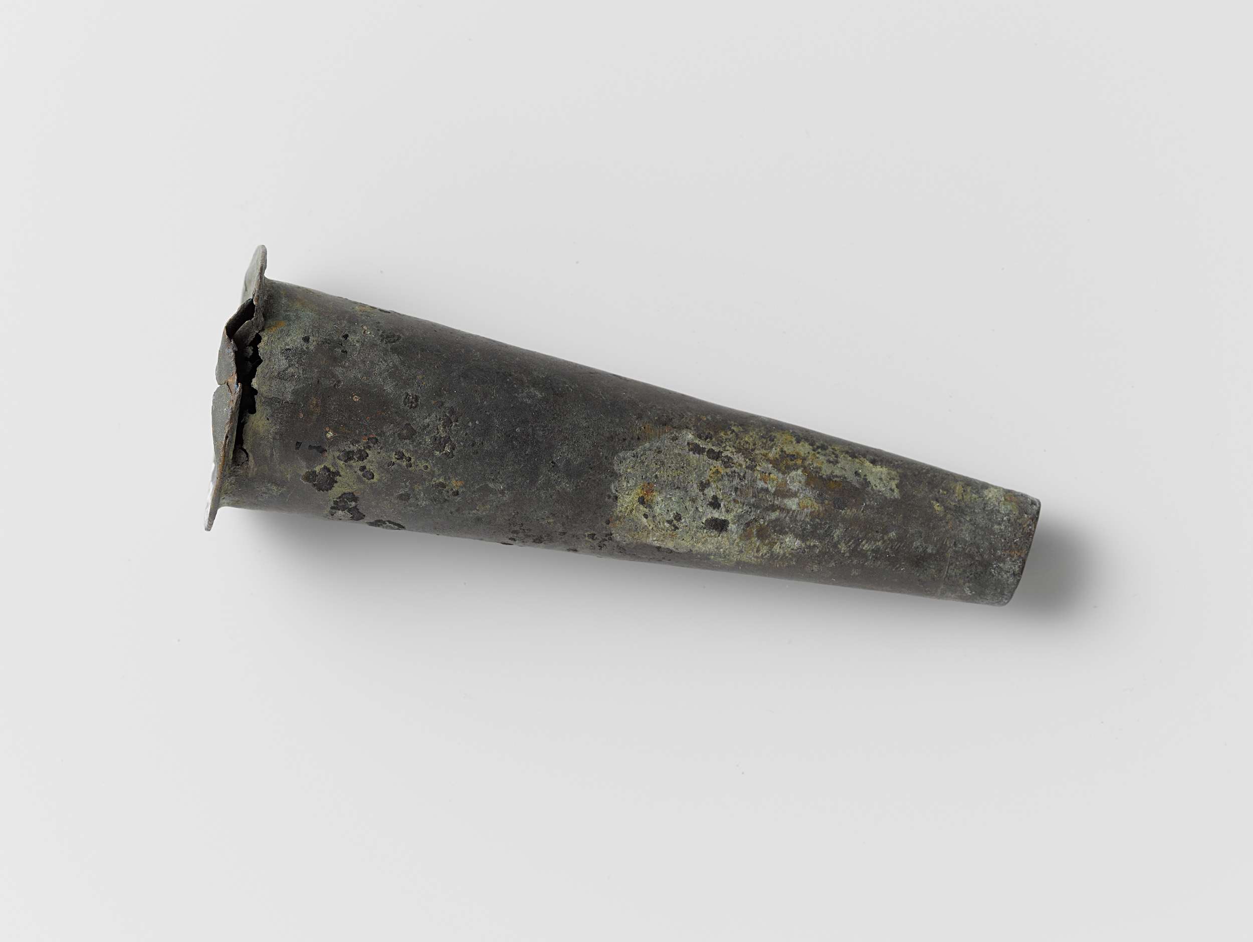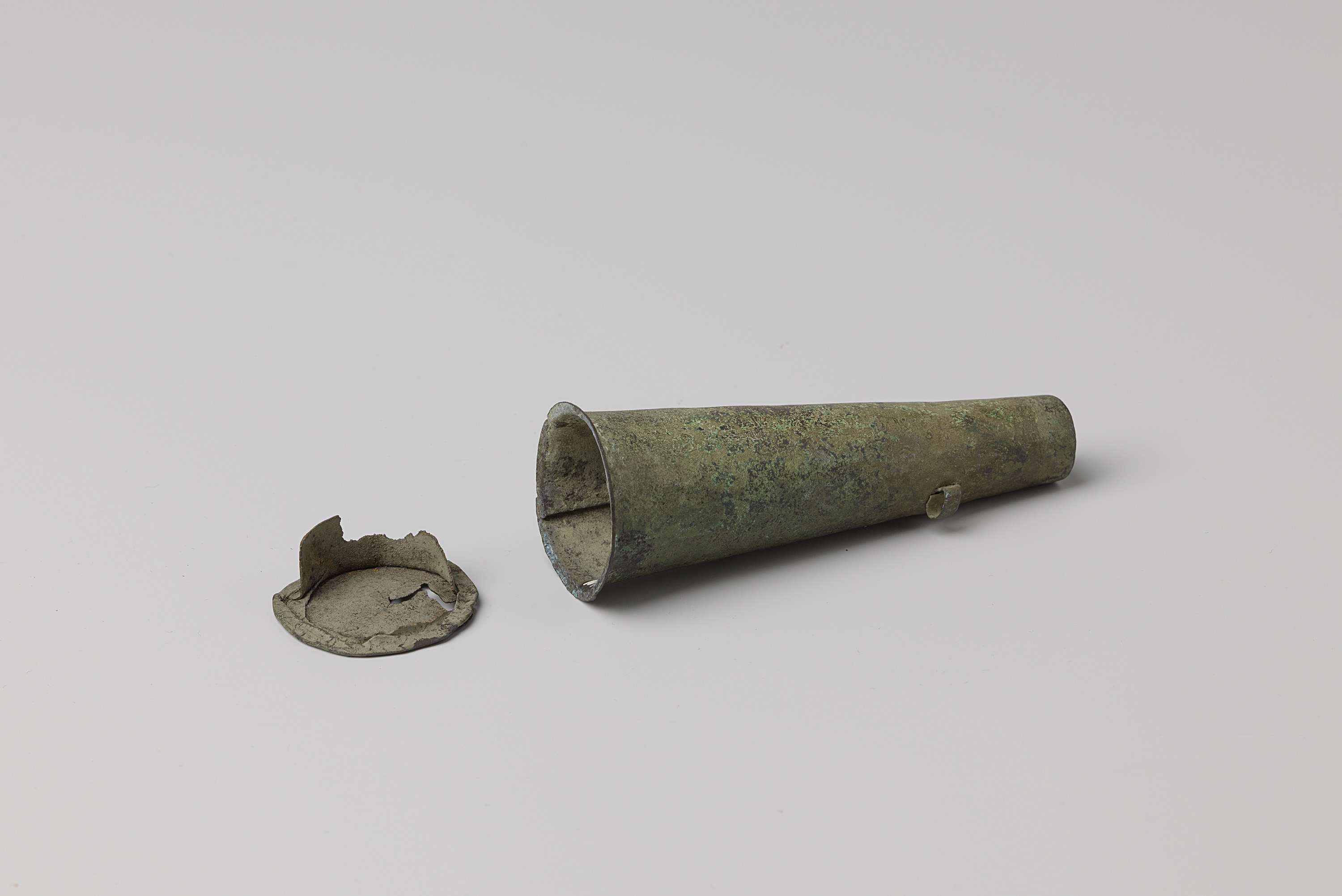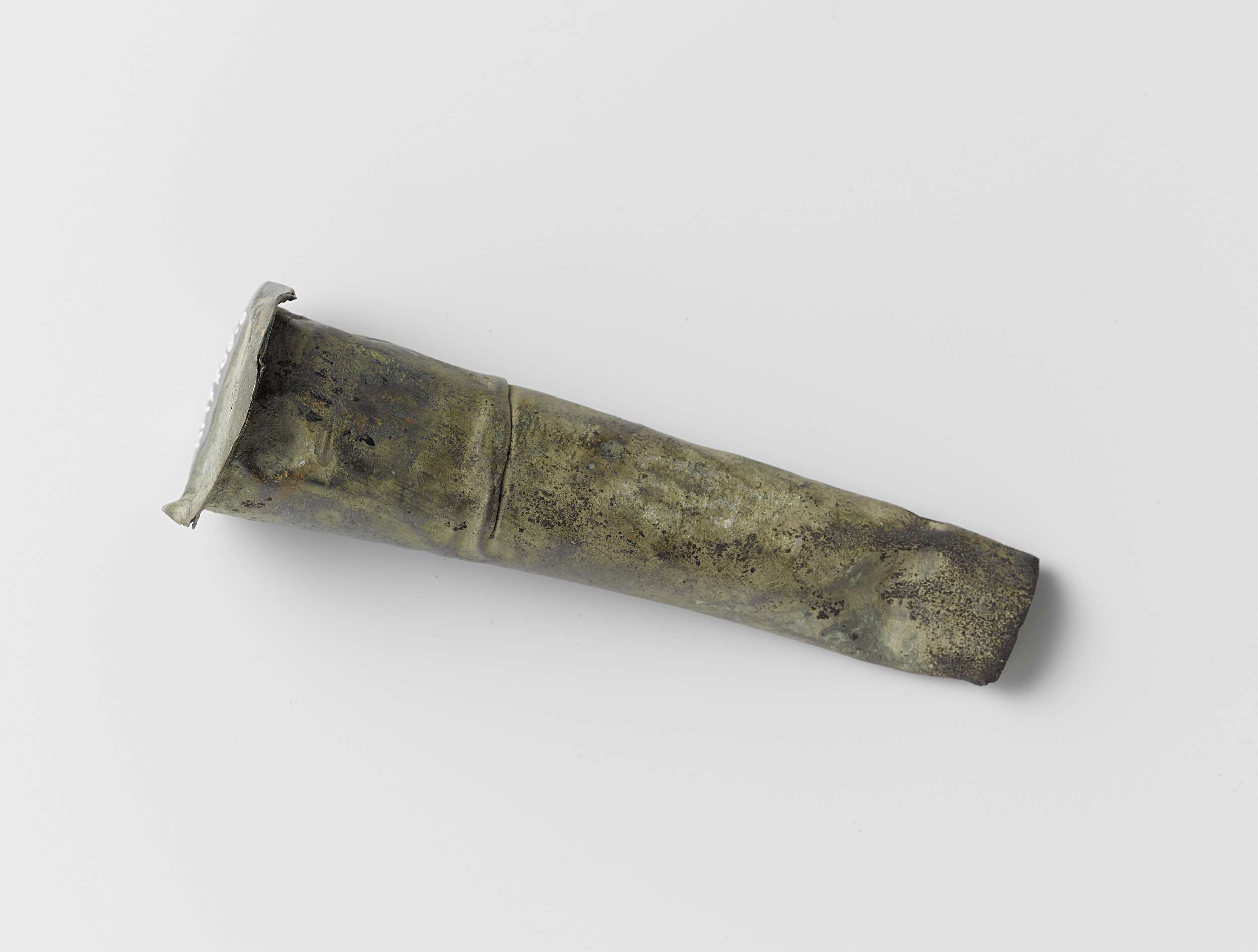 Musketmaat, fragment bestaande uit messing huls met ...