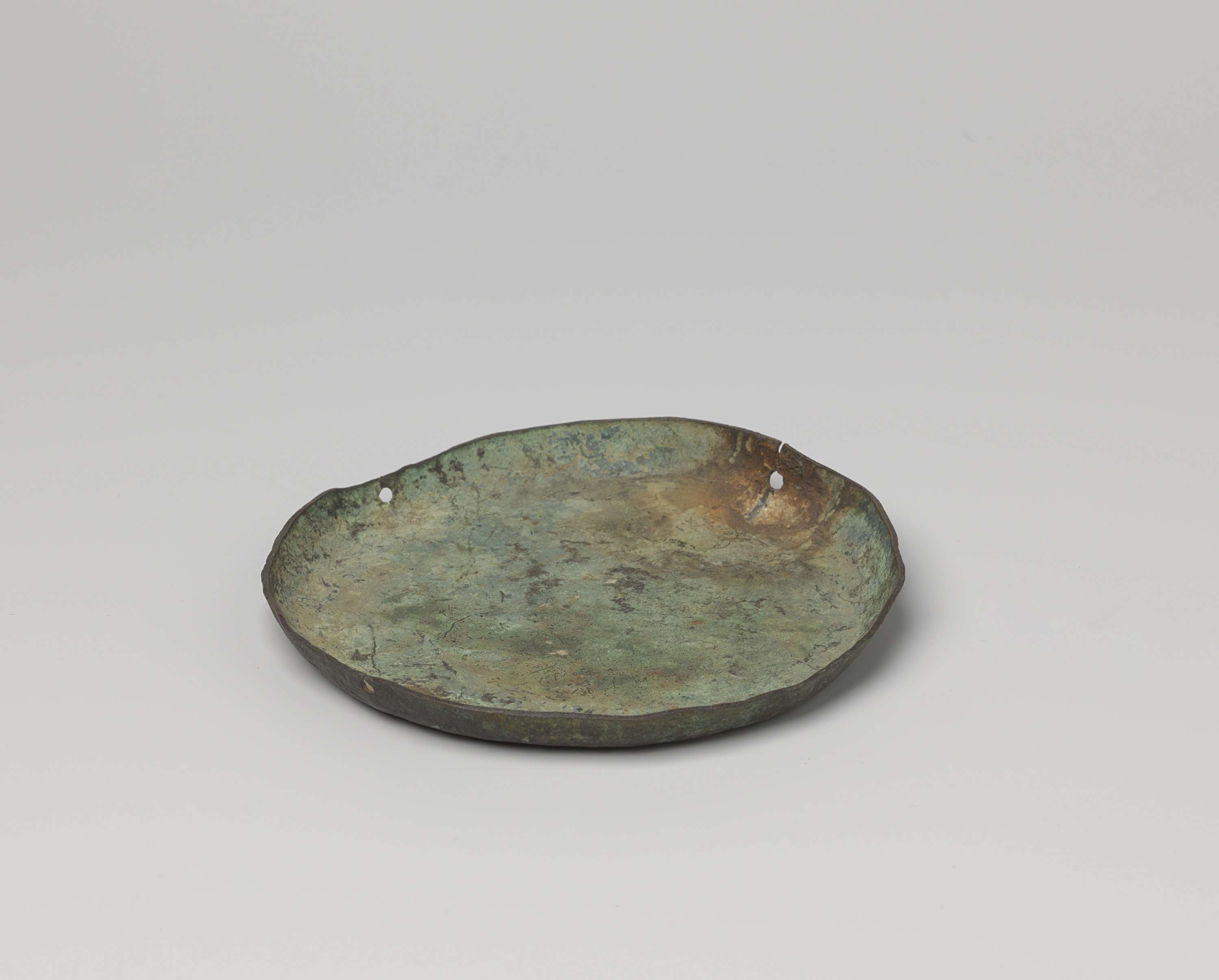 Schaal, rond van vorm met in de rand geboorde gaatjes