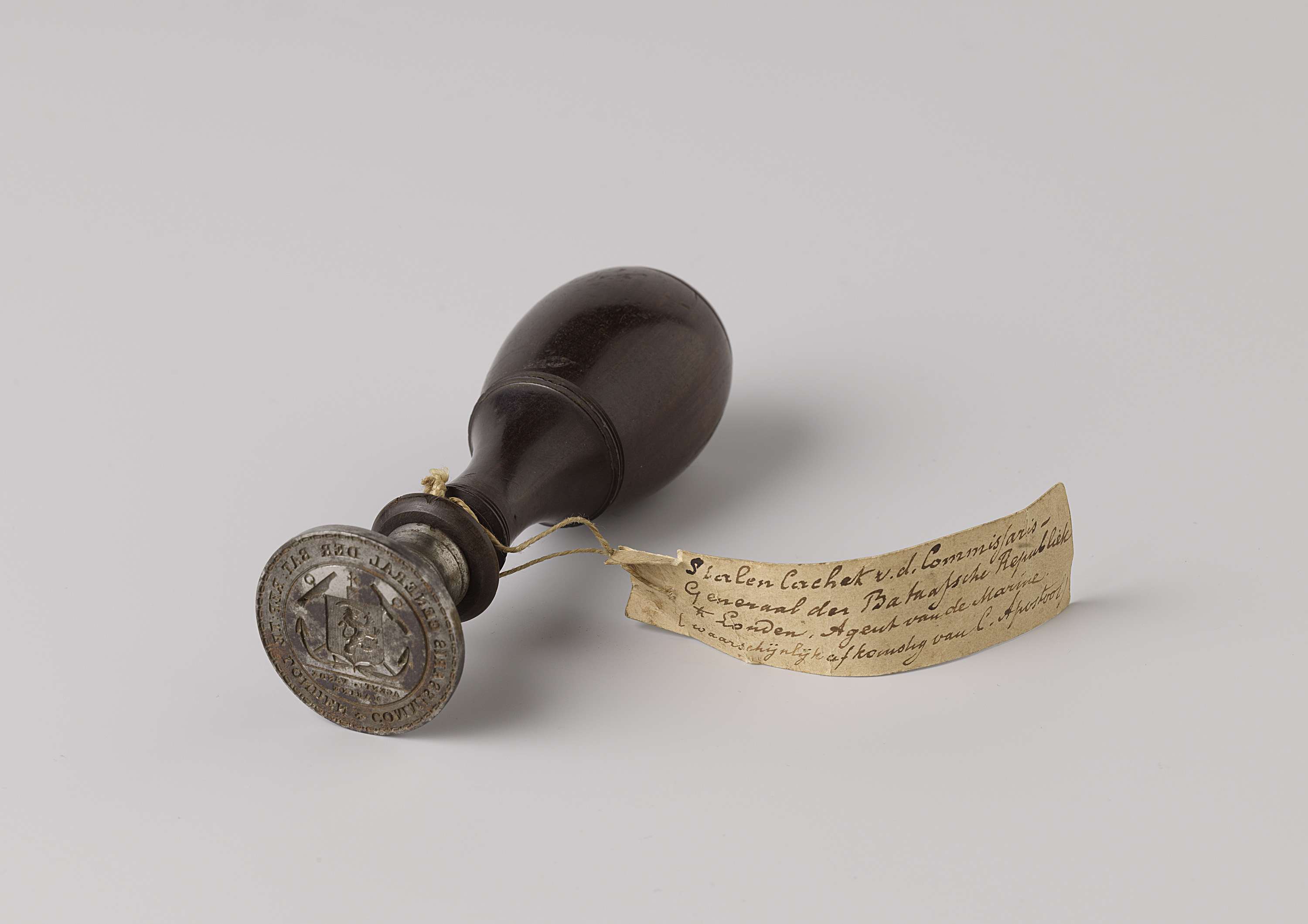 Koperen cachet waarop koninklijk wapen en omschrift:...