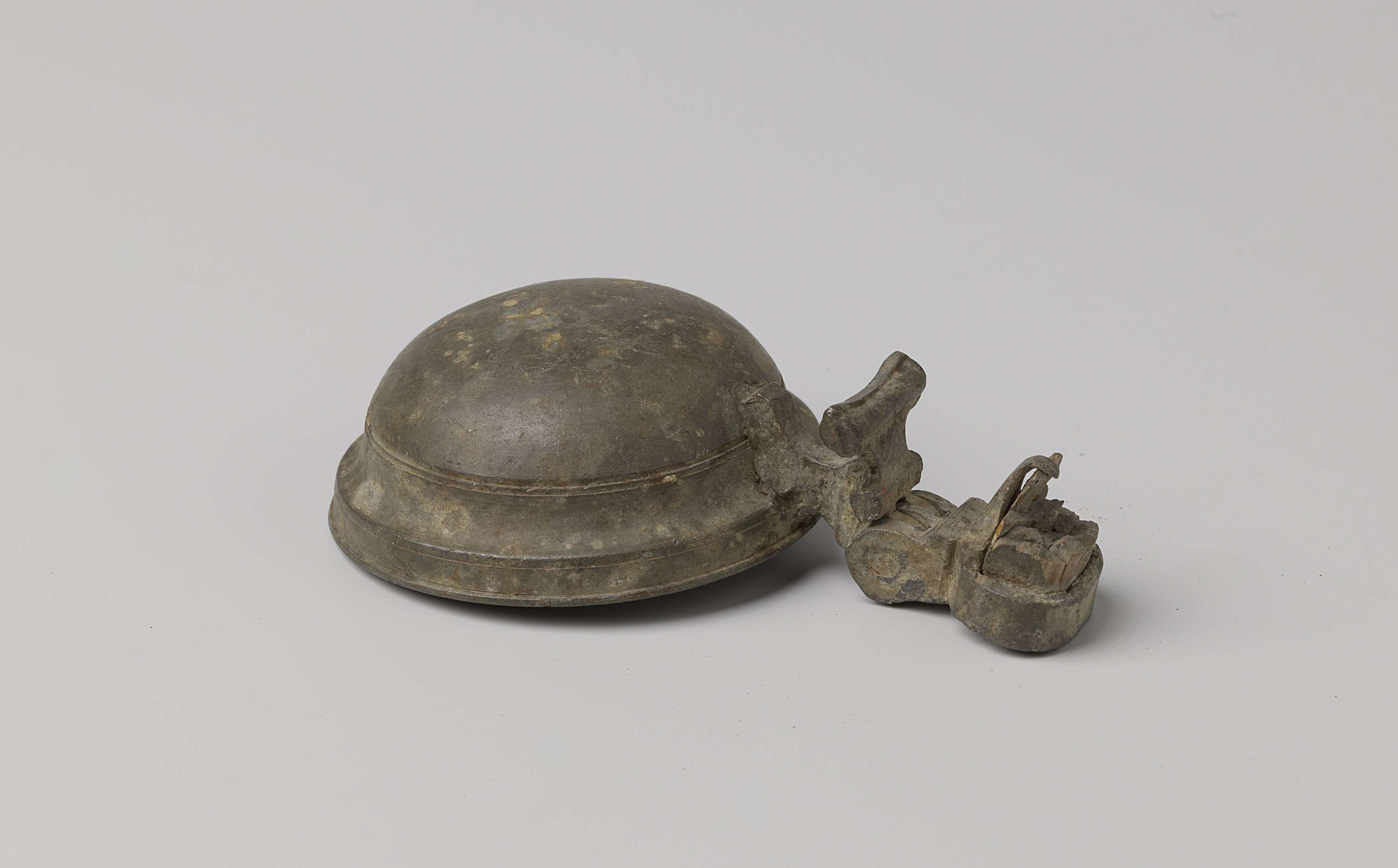 Deksel van tinnen flapkan of kruik