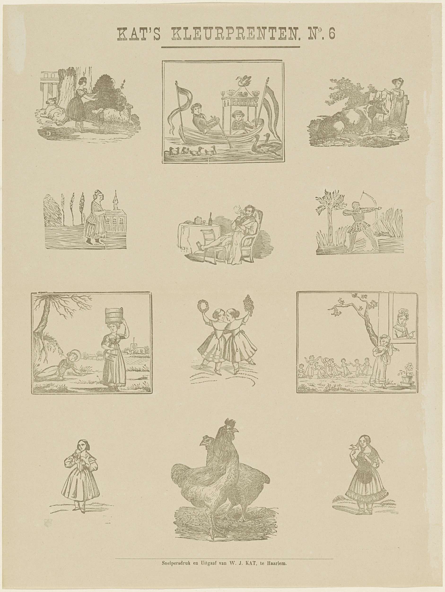 Hier ziet ge ô jeugd het boeren-leven, / Ook beesten...